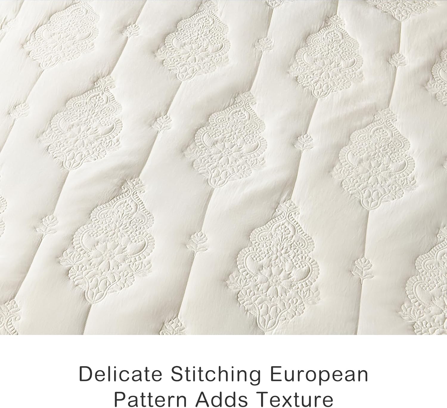 HORIMOTE HOME Ivory Quilt King Size Floral Quilt Bedspread Lightweight Soft Pre-Washed Microfiber Bedcover, 3 Pieces Thin Comforter Bed Cover Bedding Set for All Season