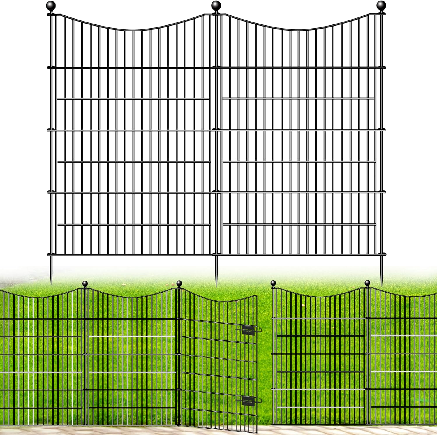 4 Panels Decorative Garden Fence with Gate, 48 in(H) X 10.5 ft(L) No Dig Dog Fence Animal Barrier Outdoor for Yard, Rustproof Metal Garden Edging and Borders, Temporary Fencing Stakes