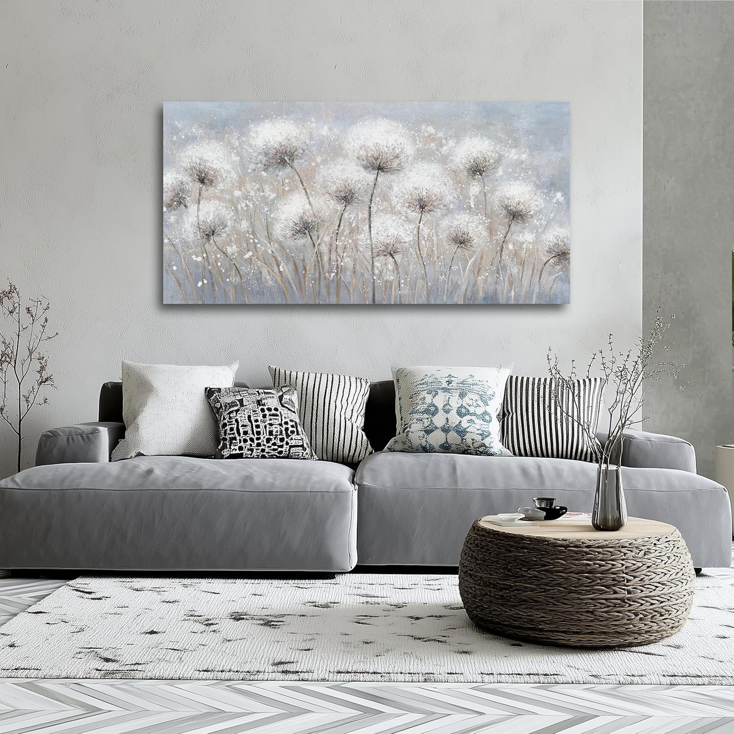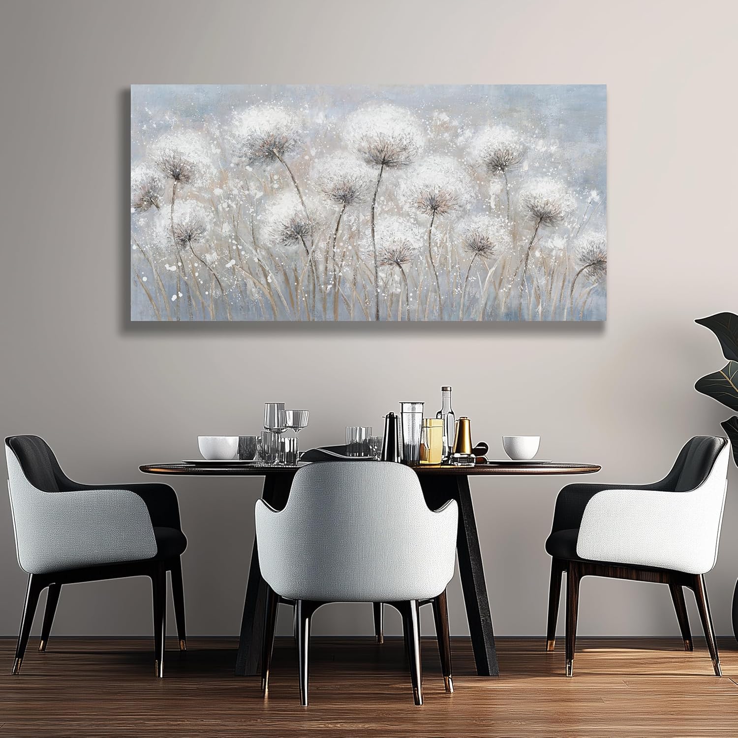 Belmrxne Dandelion Floral Wall Art White and Black Wall Decor Modern Artwork Above Couch Canvas Painting for Living Room Bedroom Dining Room Office Home Decor 24x48 inch
