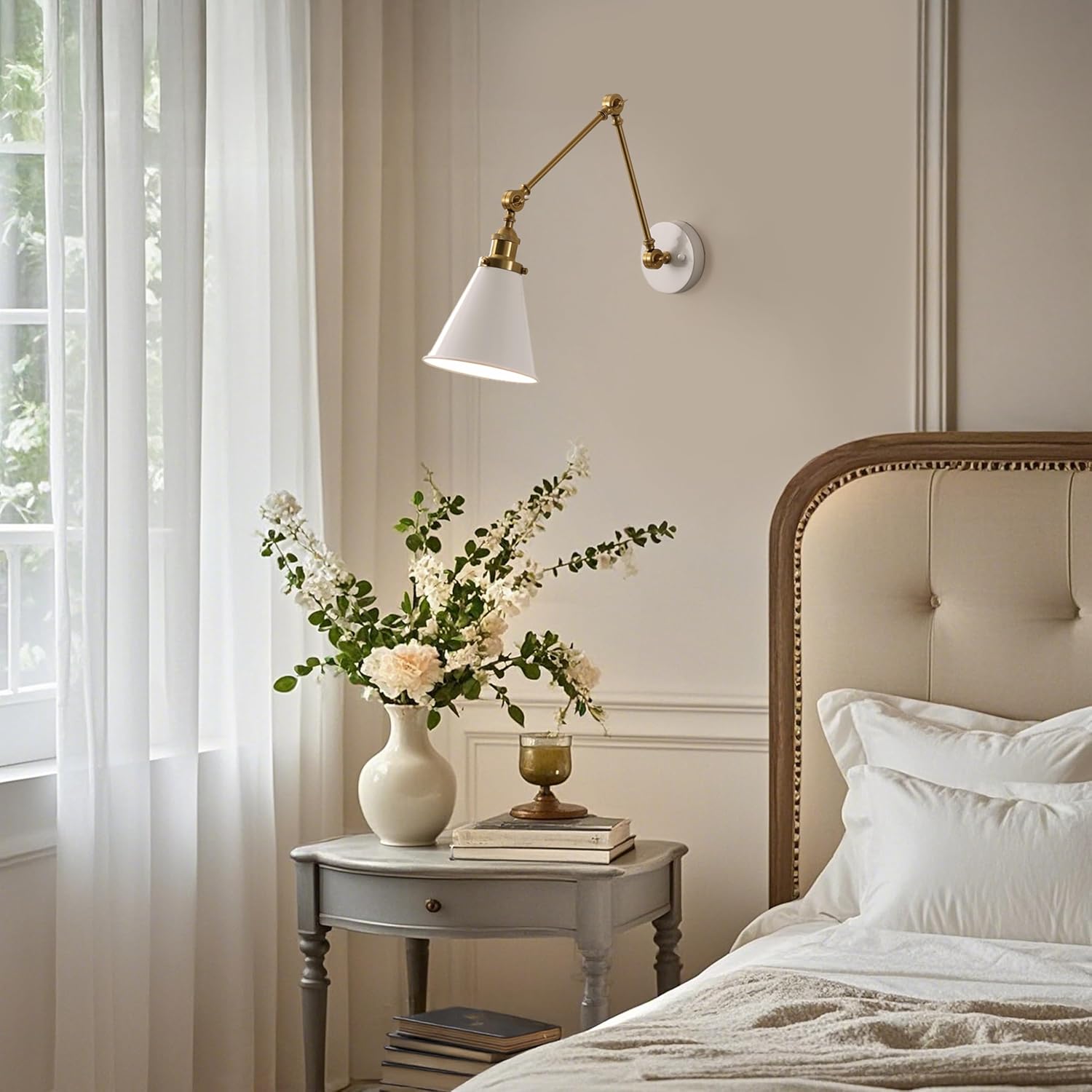 JONATHAN Y JYL7462B Rover 7" Classic Industrial Metal Adjustable Arm LED Wall Sconce, White/Brass Gold for Bedroom, Bathroom, Vanity