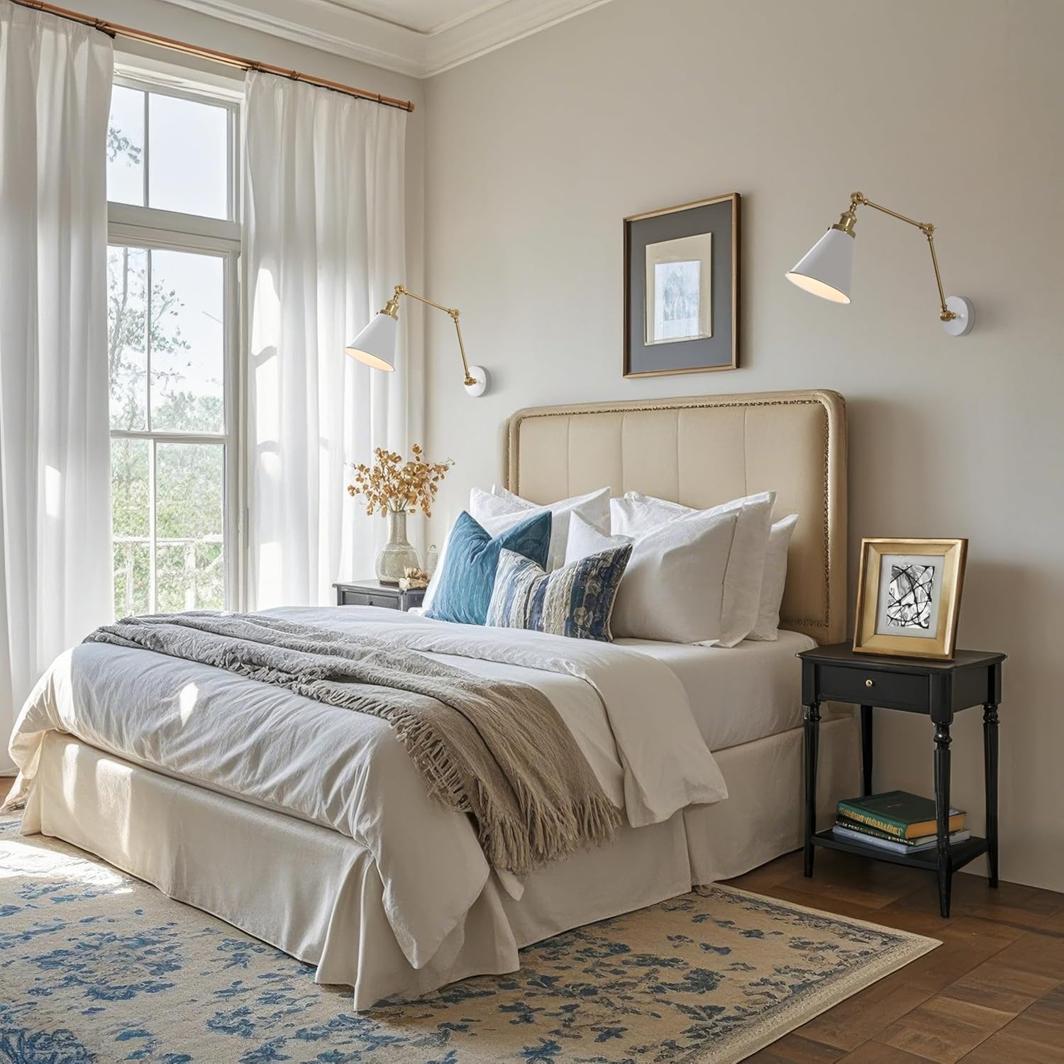 JONATHAN Y JYL7462B-SET2 Rover 7" Classic Industrial Metal Adjustable Arm LED Wall Sconce, White/Brass Gold (Set of 2) for Bedroom, Bathroom, Vanity