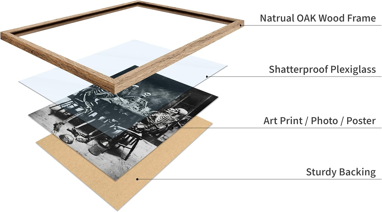 Poster Master Vintage Photograph Poster - Retro Daguerreotype Print - Gift for Artist, Friend - Skeletons Smoking at Table, Dinner Party, Goth - Wall Decor for Home, Dorm, 16x20 Beige Framed
