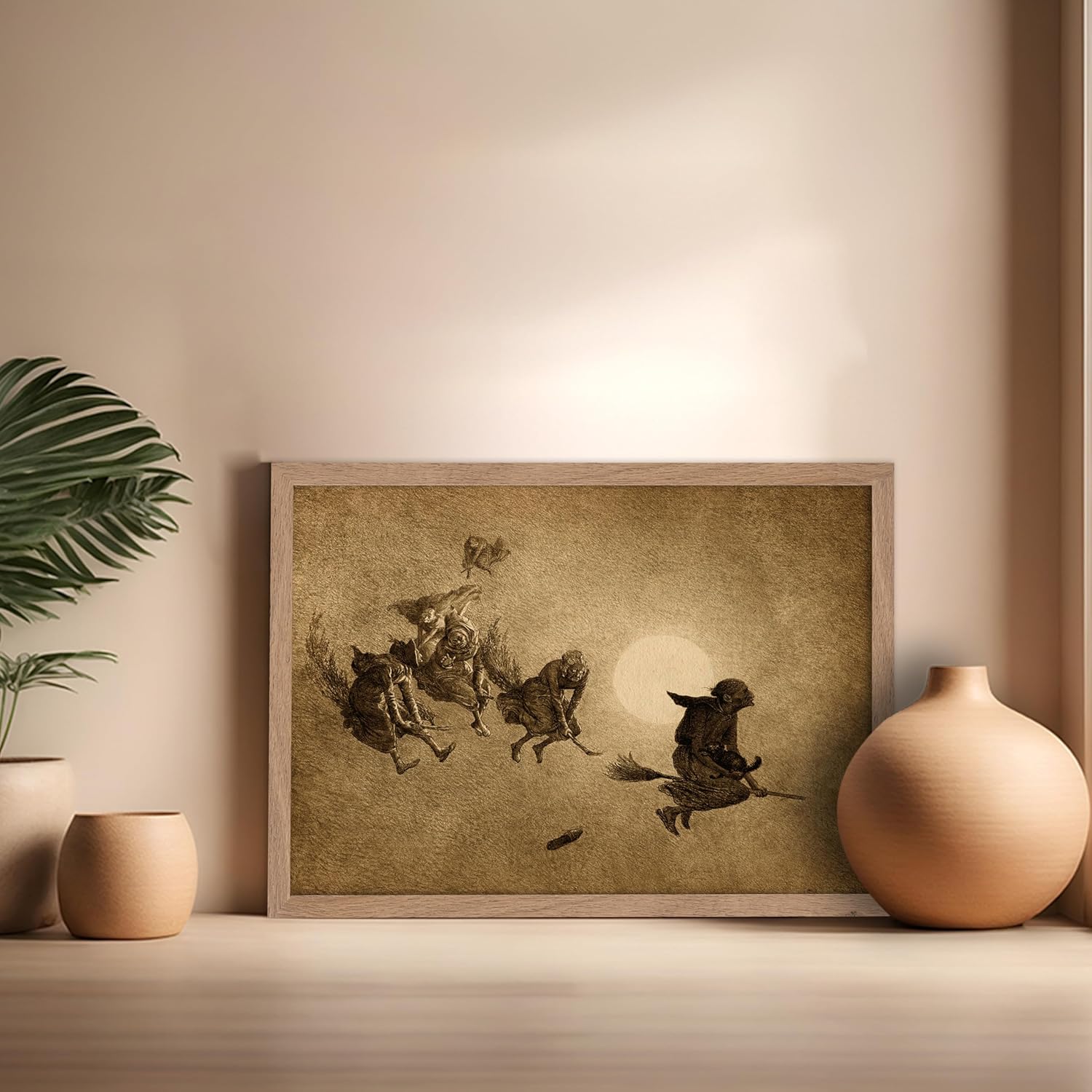 Poster Master Vintage William Holbrook Beard Poster - Retro Occult Print - Gift for Gothic, Horror Fan - The Witches Ride, Pagan, Goth, Magic - Wall Decor for Bedroom, Dorm, 16x20 Beige Framed