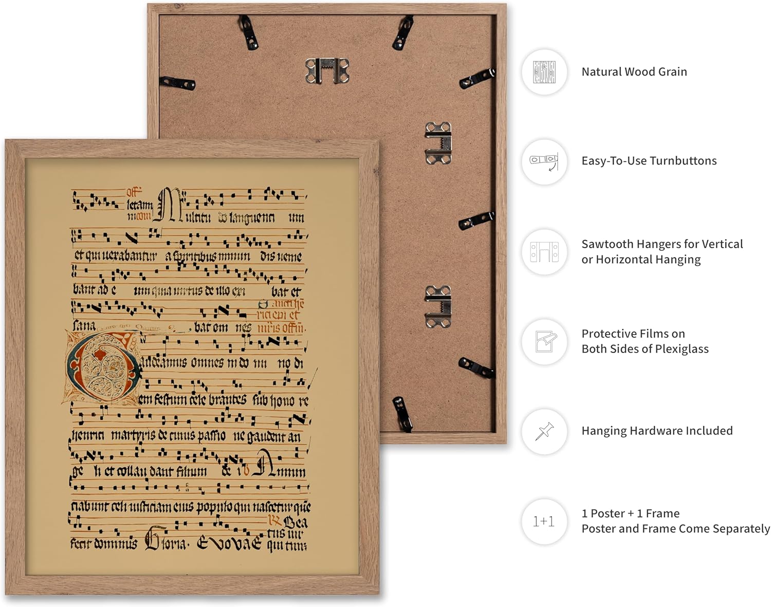 Poster Master Vintage Hymnal Poster - Retro Music Print - Gift for Artist, Friend - Graduale Aboense, Gregorian Chant Manuscript, Score - Wall Decor for Living Room, Bedroom, 8x10 Beige Framed