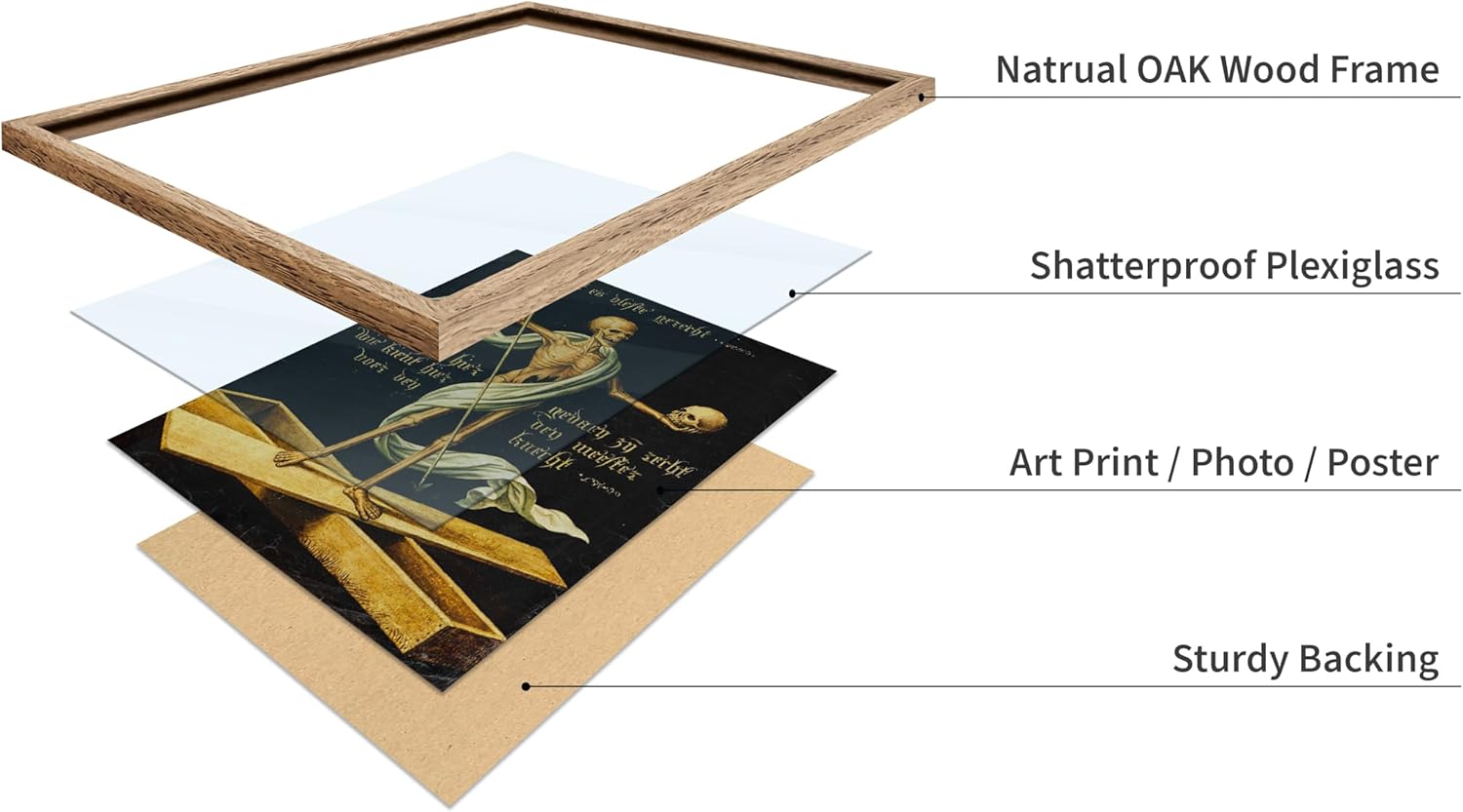 Poster Master Vintage Medieval Poster - Retro Gothic Print - Gift for Artist, Friend - Allegory of Life and Death, Skeleton, Dark, Skull - Wall Decor for Home, Living Room, 8x10 Beige Framed
