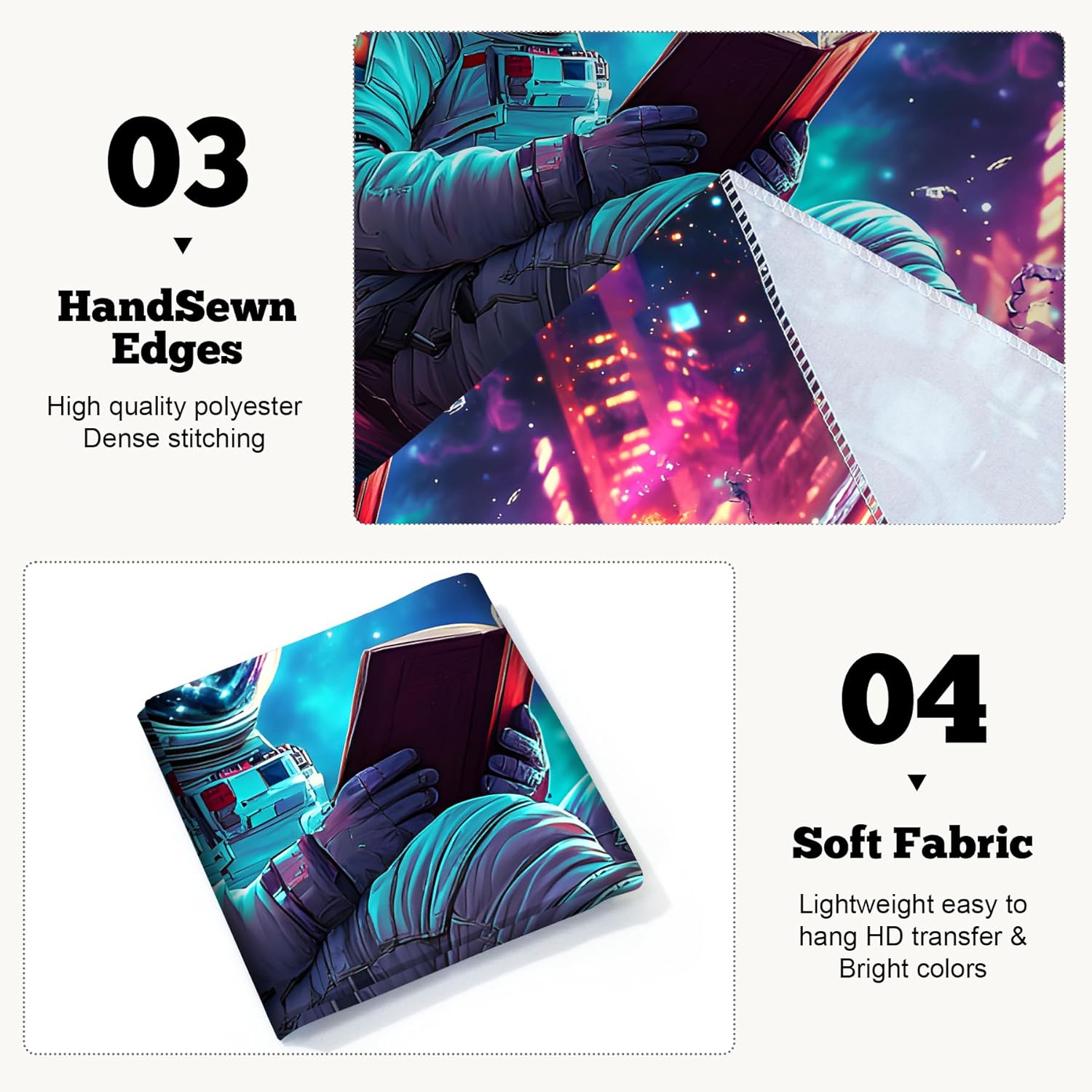 BVBOX Astronaut Space Blacklight Tapestry 79"x59", UV Reactive Astronaut Reading Universe Galaxy Planet Glow in Dark Tapestries, Black Light Neon Upright Poster Wall Hanging Backdrop Decor for Bedroom Living Room