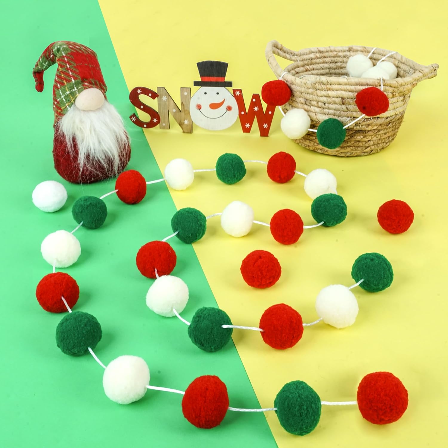 XmasExp Christmas Pom Pom Garland Decorations, Large Felt Ball Garland for Mantle, Indoor Home Decor, Tree Ornaments, Kids Room and Party Hanging Decor, 1.57" 13 Ft.