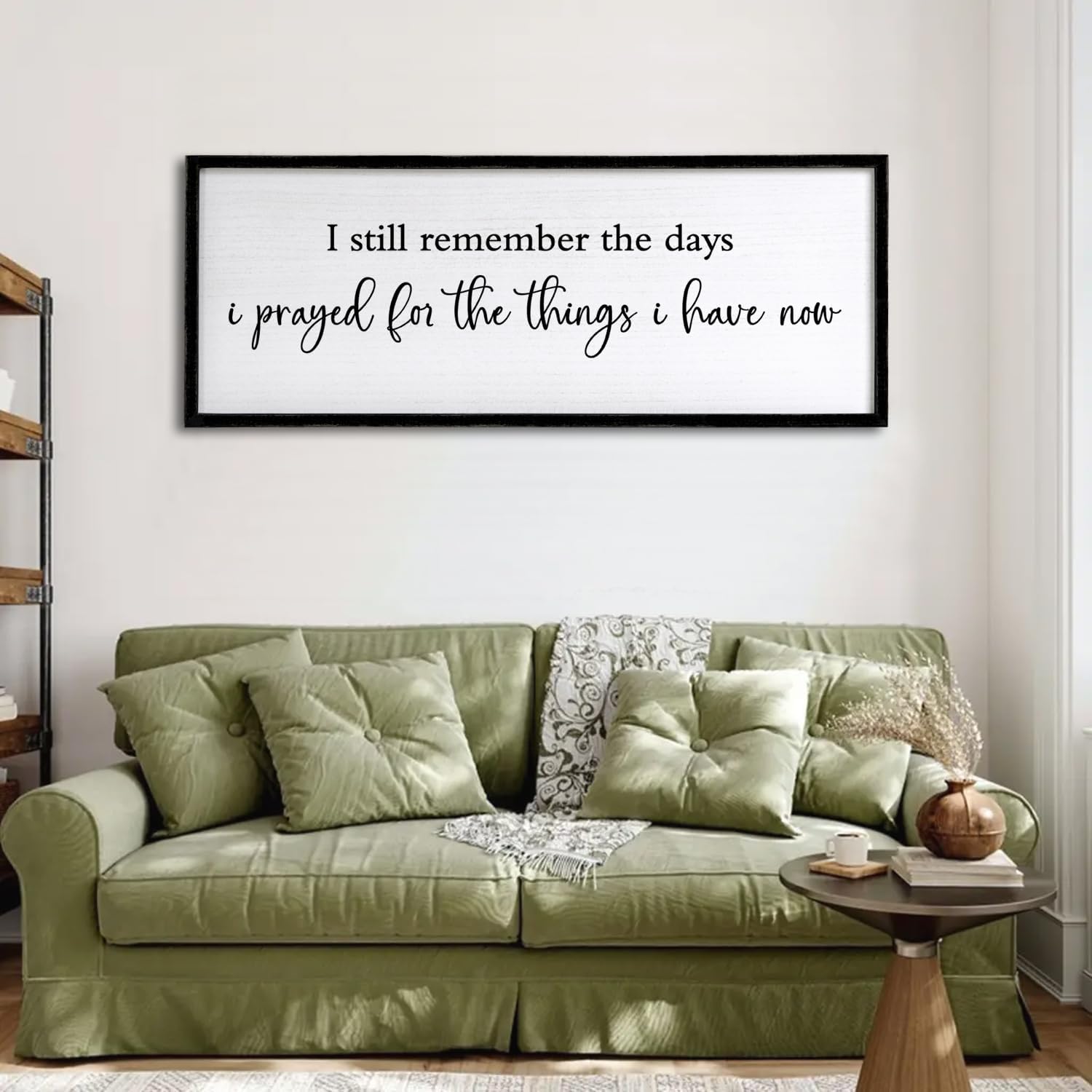 I Still Remember the Days I Prayed for the Things I Have Now Sign Framed Wall Art, 32''×12'' Rustic Horizontal Plaque, Farmhouse Long I Still Remember the Days Wood Sign Wall Decor