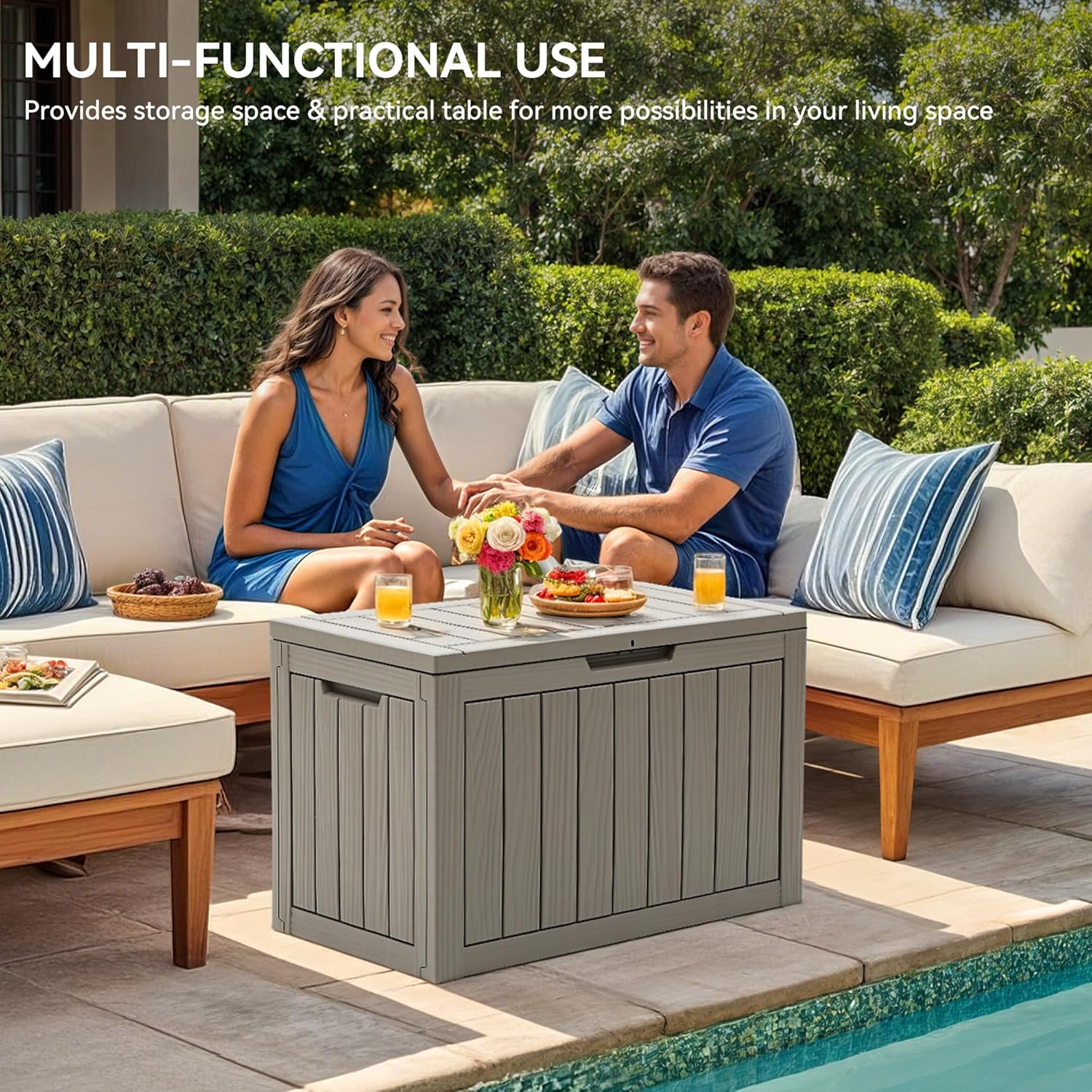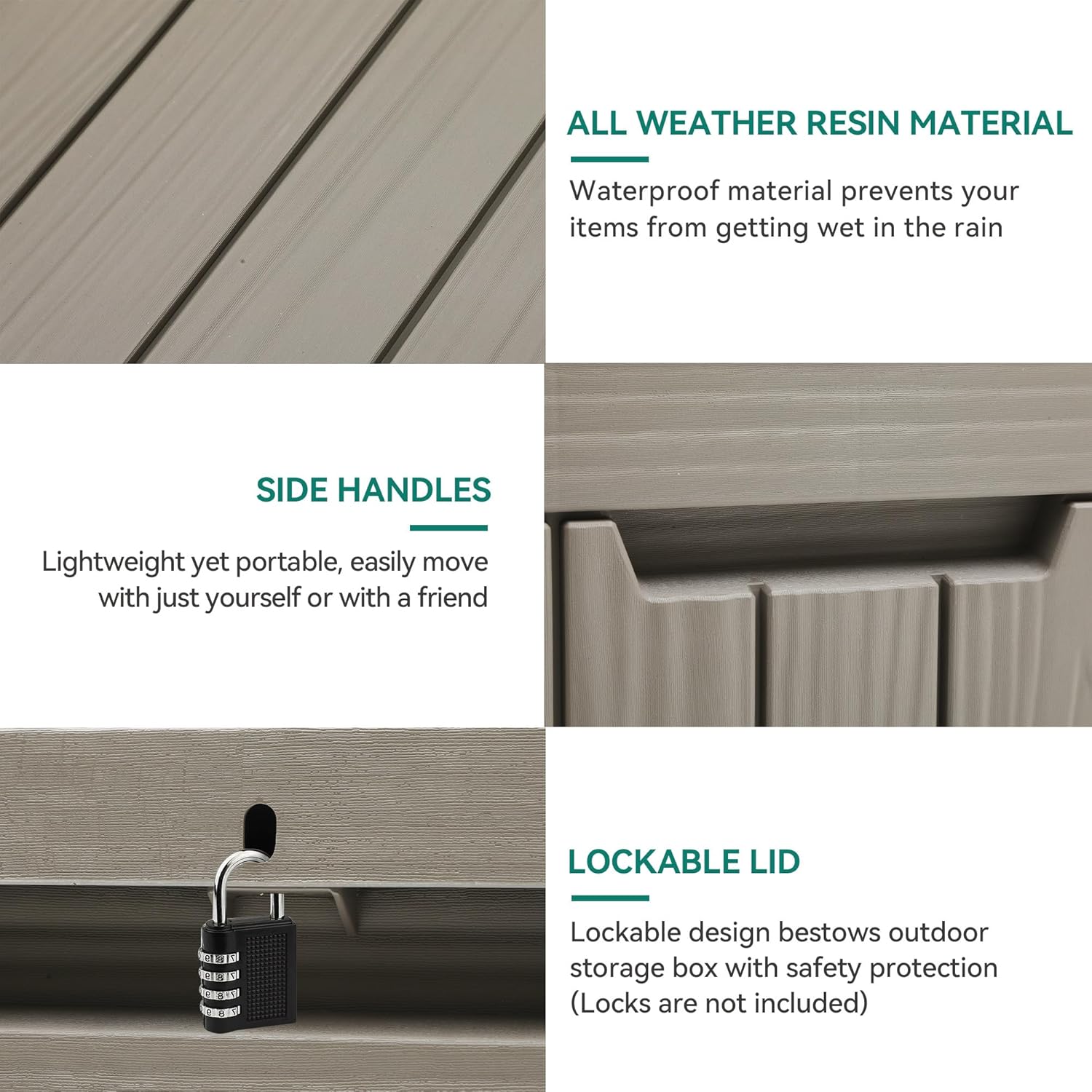 - Built for Outdoors: Enjoy peace of mind with our weather-resistant outdoor deck box; Made from durable PP with a beautiful wood grain finish, ensuring the outside storage box stays vibrant and functional through sun and rain; Minimum maintenance required