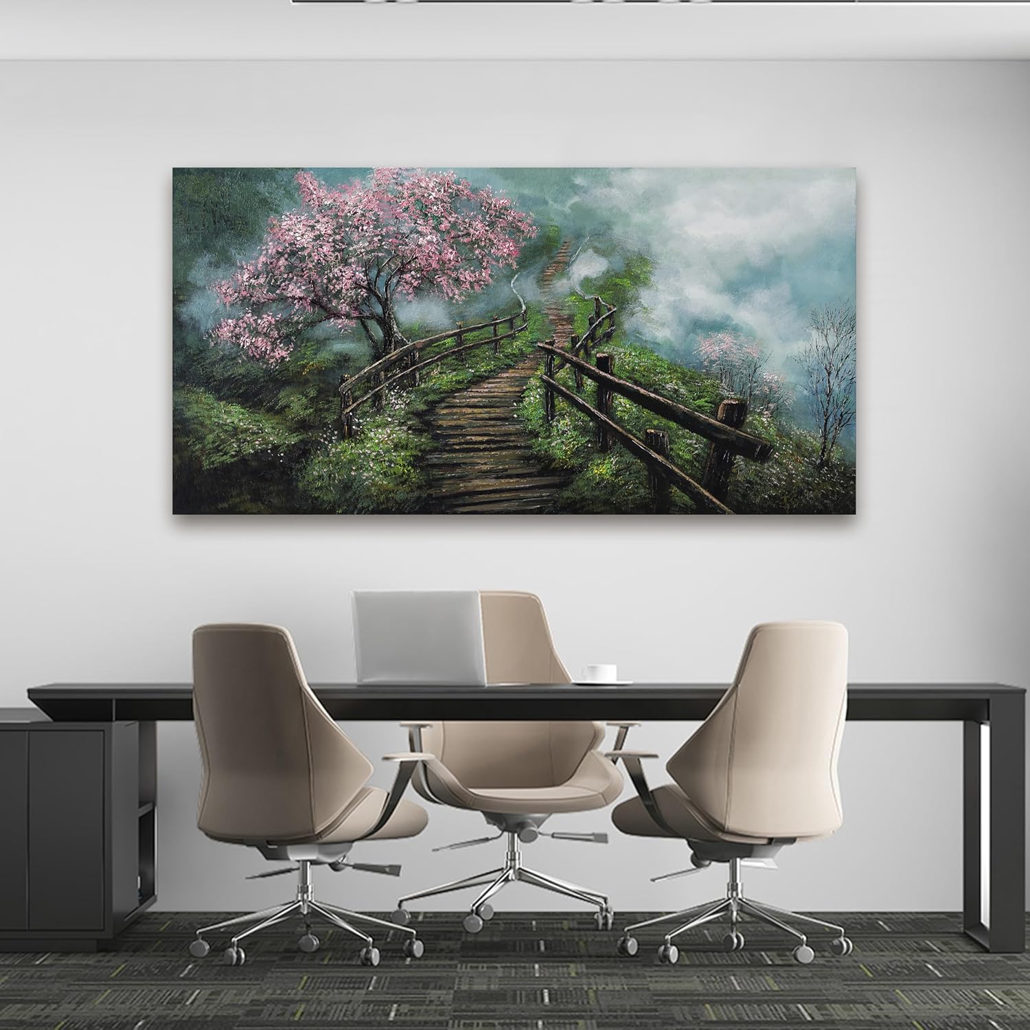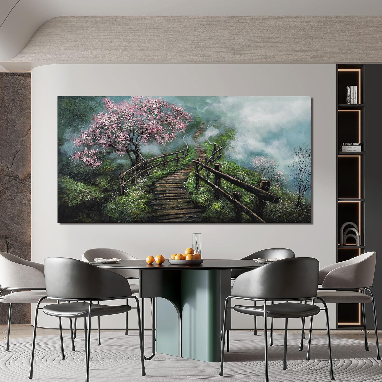 Canvas Wall Art Decor Modern Wall Art Pictures for Living Room Tree of Life Wall Art Decor Foggy Trail Large Artwork for Walls Tree Flower Wall Art Prints Art Work for Home Office Wall Decor 24" X 48"