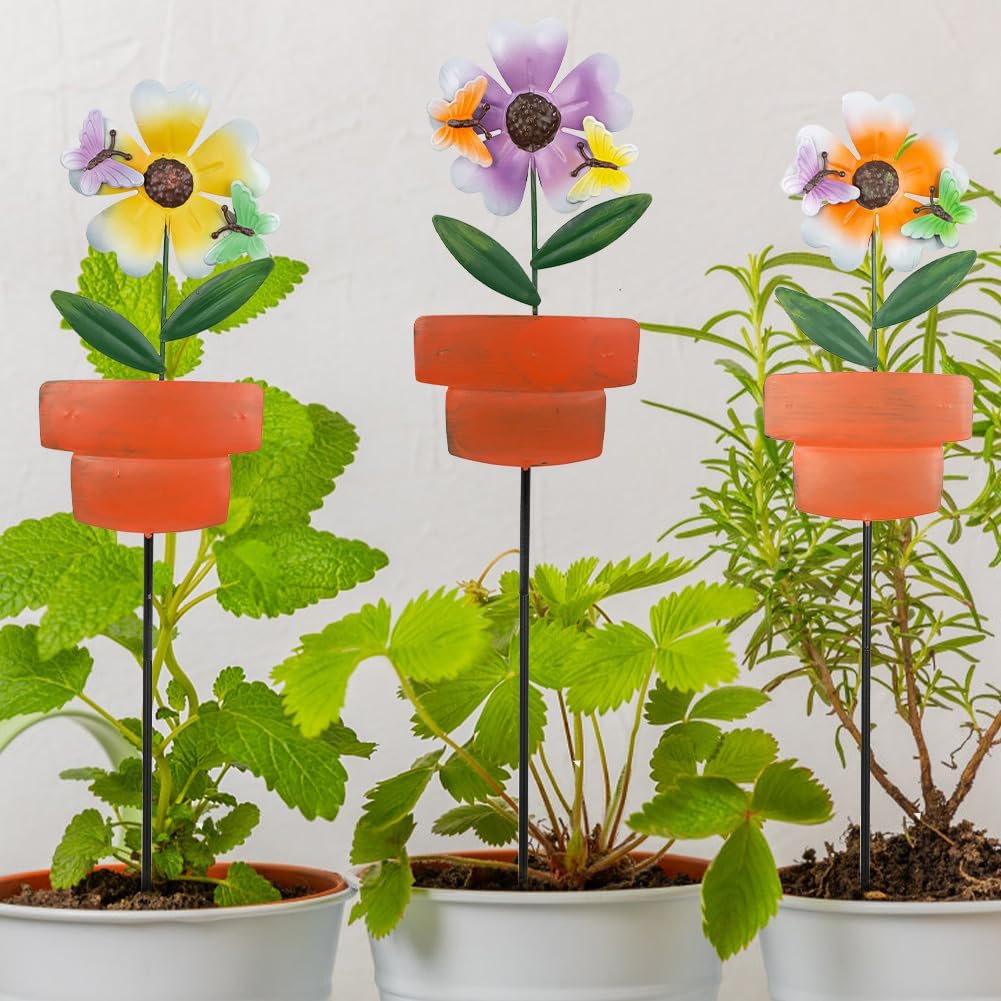 - Exquisite Decorative Design: This decorative garden stakes features vibrant flowers in orange, yellow, and purple paired with delicate butterfly accents and terracotta pot shapes. Handcrafted details bring a lively, whimsical charm, making it a standout decor piece to light up your garden, yard, or outdoor space