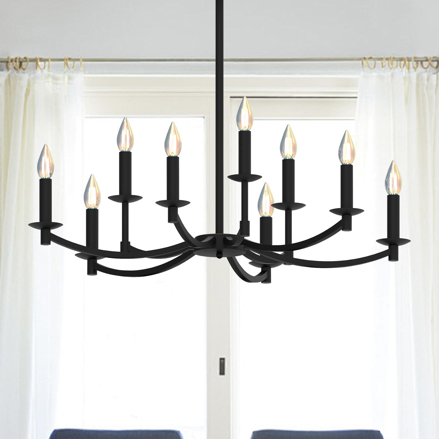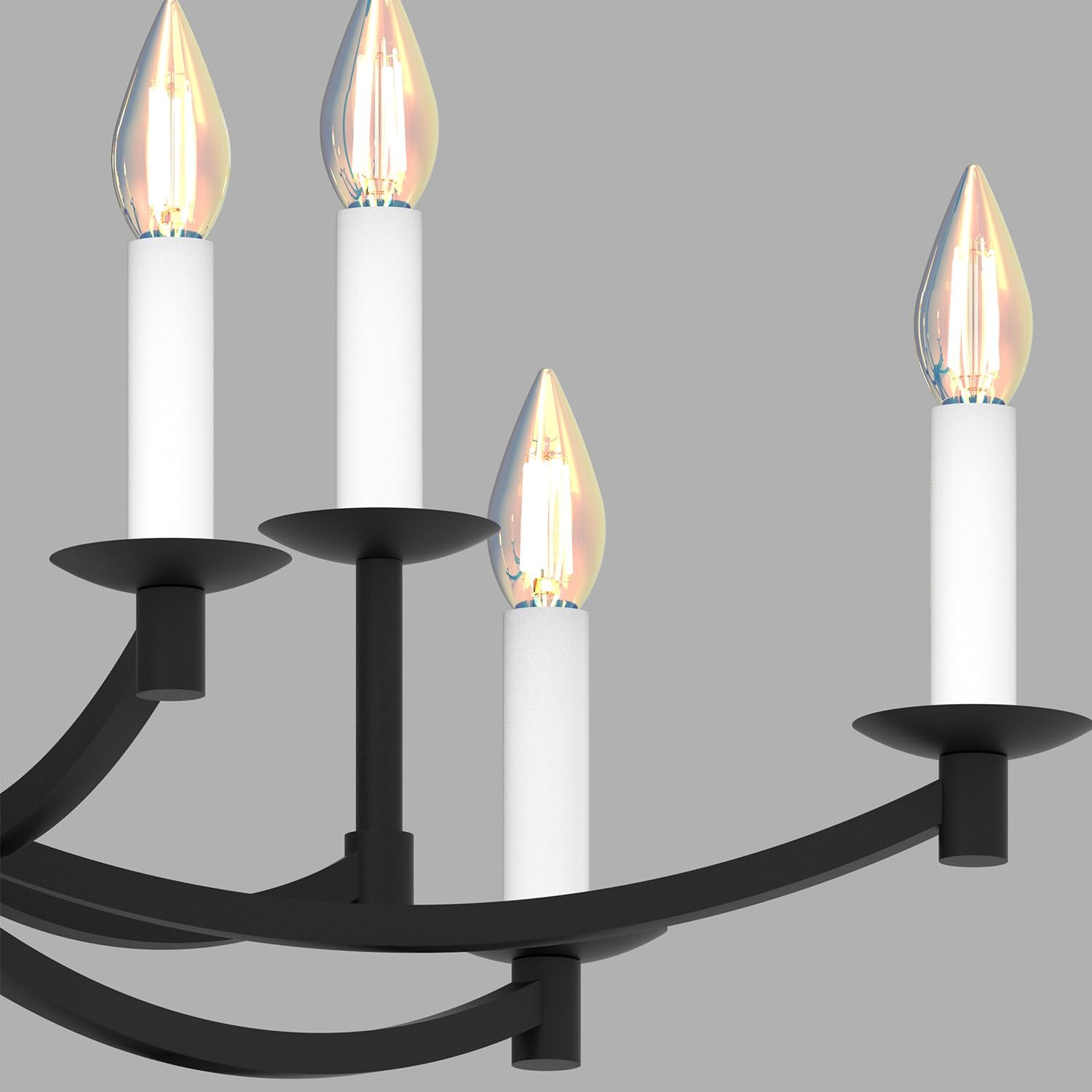 - 【Easy to Install】This farmhouse round chandelier uses the LED E12 lamp socket. After you open the package, you only need to assemble the modern black chandelier according to the installation manual, and then install the dining room chandelier on the 110V ceiling.