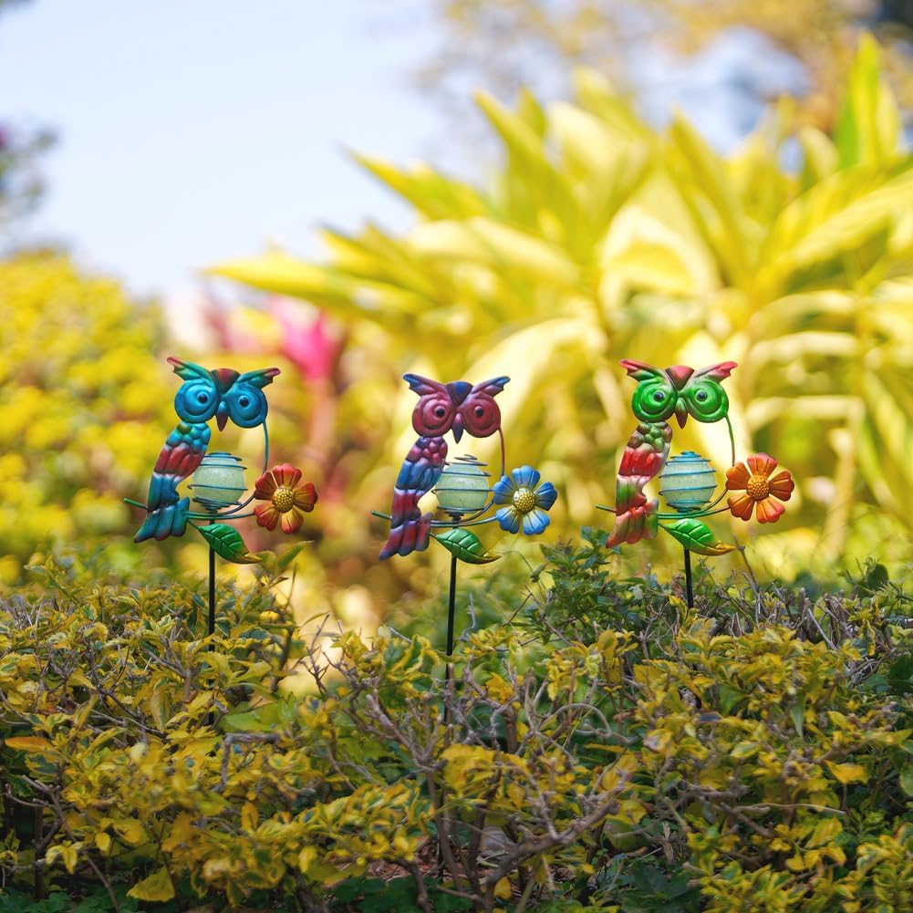 Set of 3 Owl Decorative Garden Stakes,Glow in The Dark Metal Yard Art,Waterproof Stakes Decorative for Outside,Metal Garden Decor for Mom,Women,Yard Lover