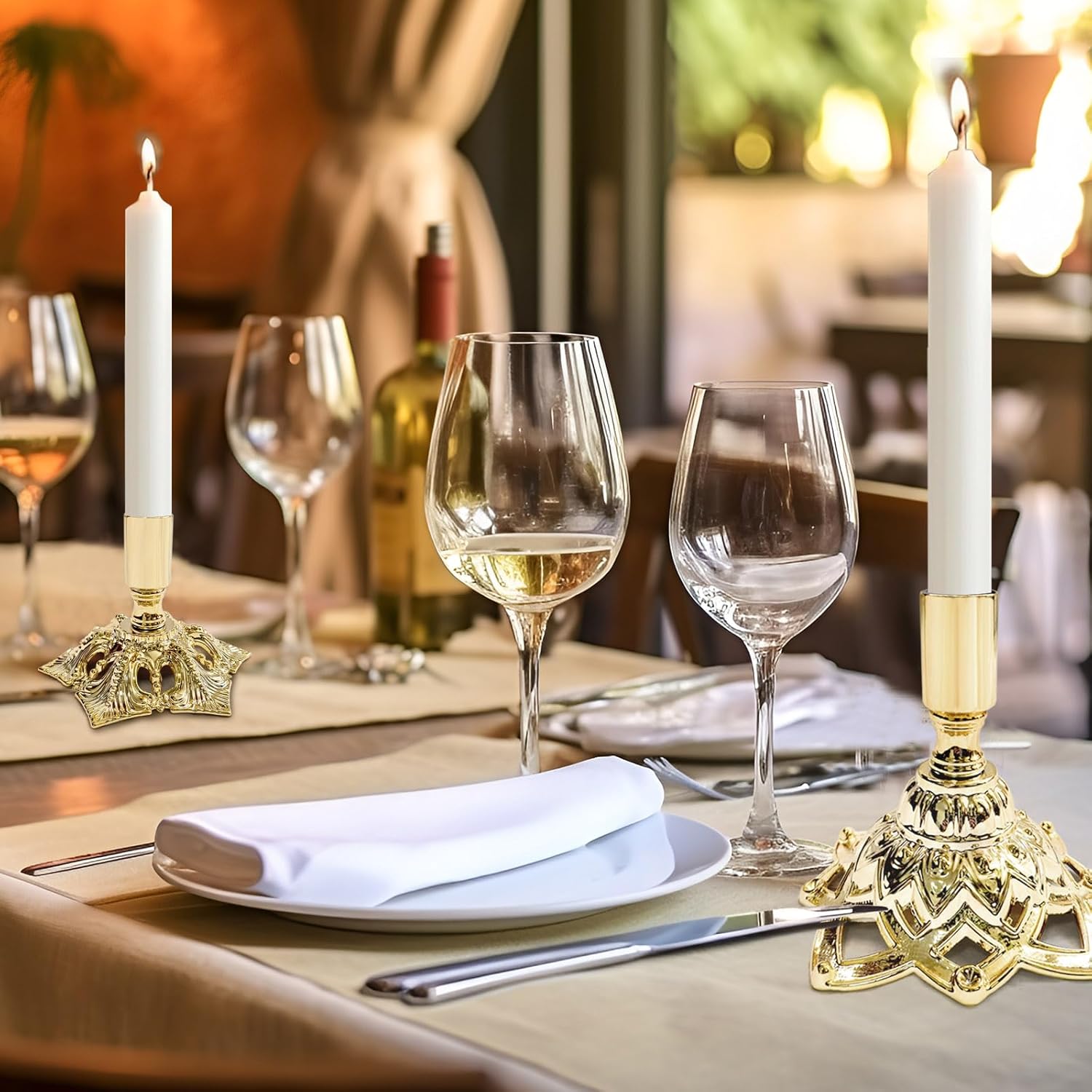 - Sturdy Gold Metal Candle Holders – Crafted from high-quality alloy, these taper candle holders feature a professionally plated and polished finish that is durable, rust-resistant, and easy to clean. Designed to securely hold standard ¾-inch taper candles.
