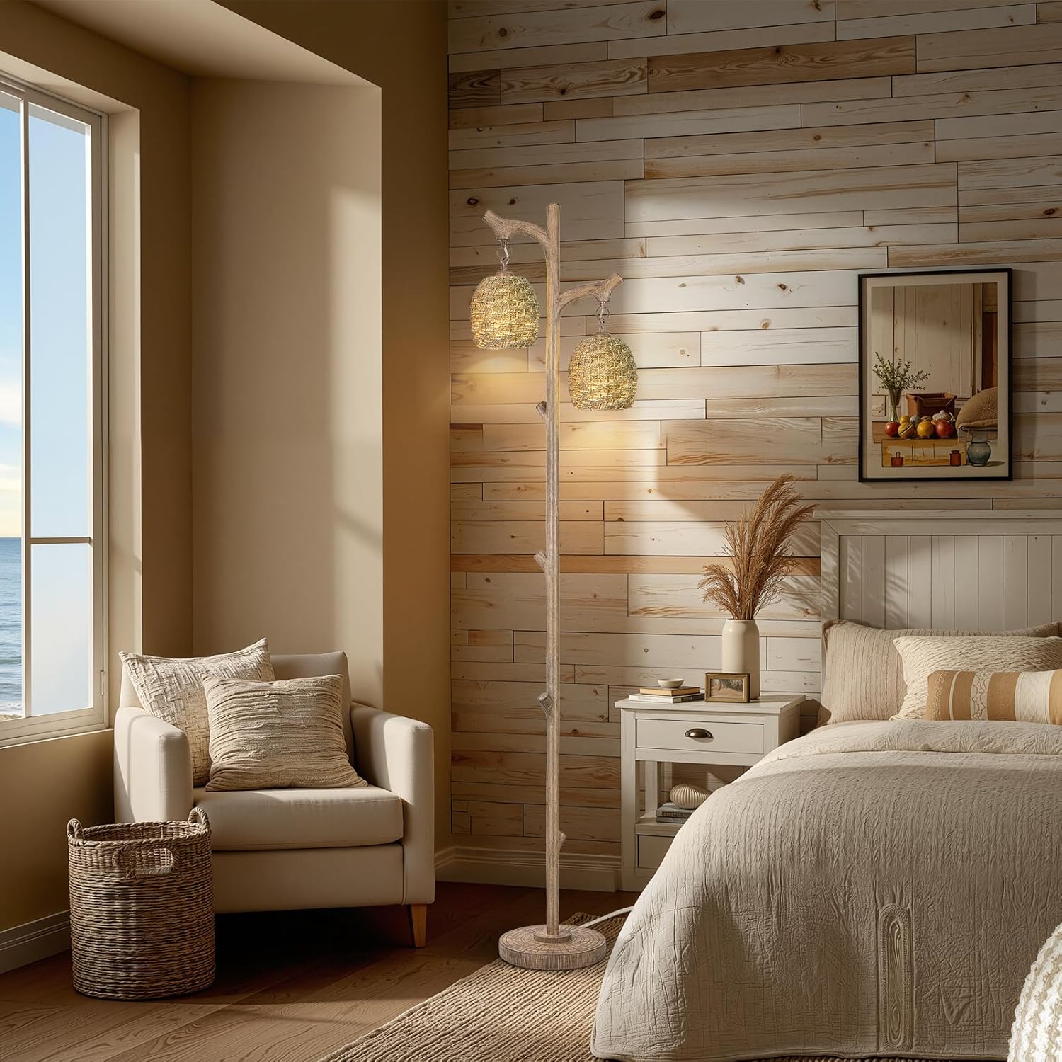 - FARMHOUSE FLOOR LAMPS, EXCELLENT ROOM DECOR: Floor Lamp for living room serves both as functional light source and decorative piece, bedroom floor lamp goes great with variety of decor, ideal for living room, bedroom, nursery, office, dorm, etc. Rustic floor lamp, adds a delightful touch of traditional charm and even perfectly for Christmas decoration, Halloween decoration and so on