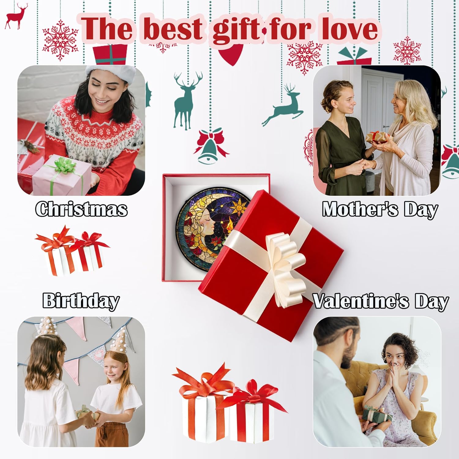 Stained Glass Window Hanging, Moon Goddess Torch Suncatcher Diamond Glass Panel Hangings Dream Sun Catchers Decor for Birthday for Women, Men, Wife, Aunt, and Mom 6.3 in