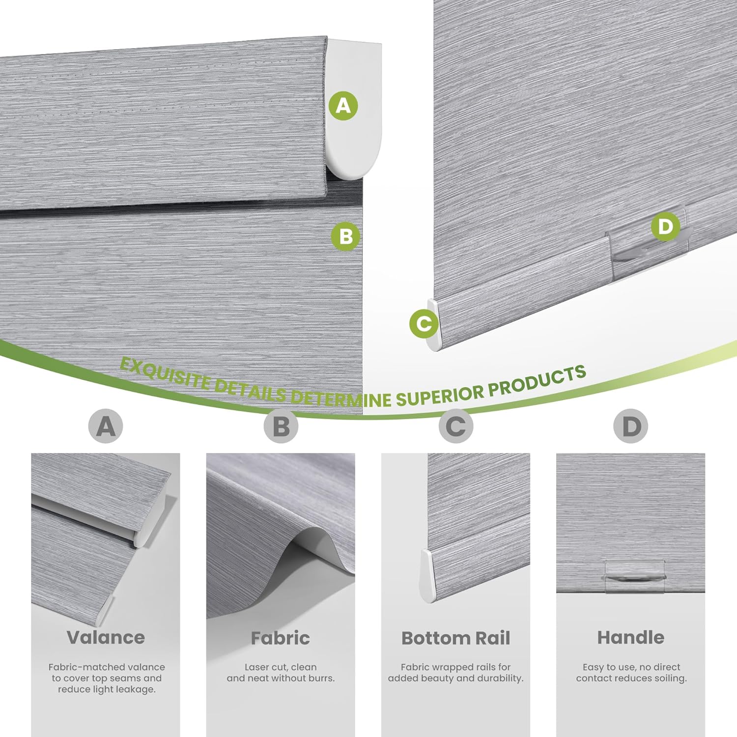 - [Quality Assurance] Professional roller shades production process, Upgraded generation of roller shades products, to give you the best-looking decorative effect. We offers 24 months guarantee, if you have problems in using our cordless roller shades, please contact us via Amazom mail. We will provide you with professional after-sales service.