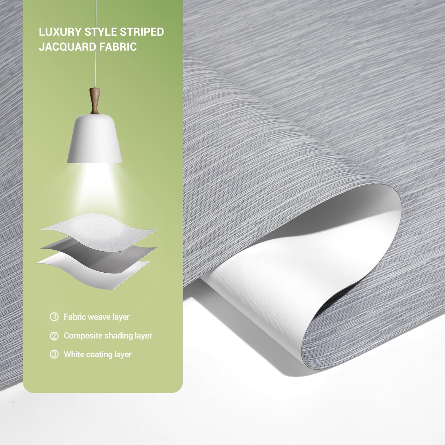 - [Luxurious Jacquard Crafted Fabrics] New blackout roller blind fabrics made of Jacquard, with interlaced weave, richer texture, more skin-friendly and delicate hand feel, make your home more artistic. It can block the sunlight and protect your privacy. The fabric is laser cut so that the fabric has no burrs.