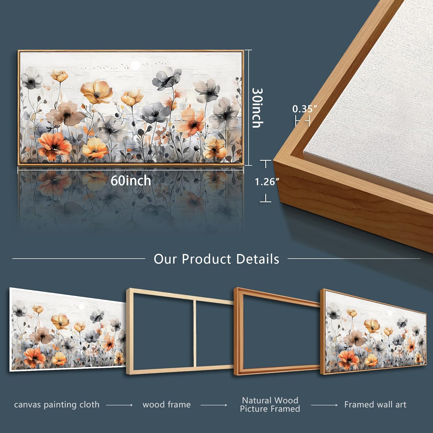 - Framed Wall Art Size: 30x60 inches (75x150 cm) Flowers,Makes a great focal point for a living room, bedroom, office, or any space that needs natural beauty