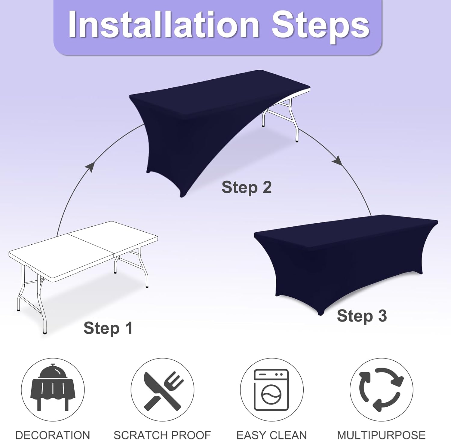 ABCCANOPY 2 Pack 6 FT Navy Spandex Table Cover Stretch Fitted Wrinkle Resistant Tablecloth Reuse for Rectangular Folding Table Patry Event Wedding Banquet Protector