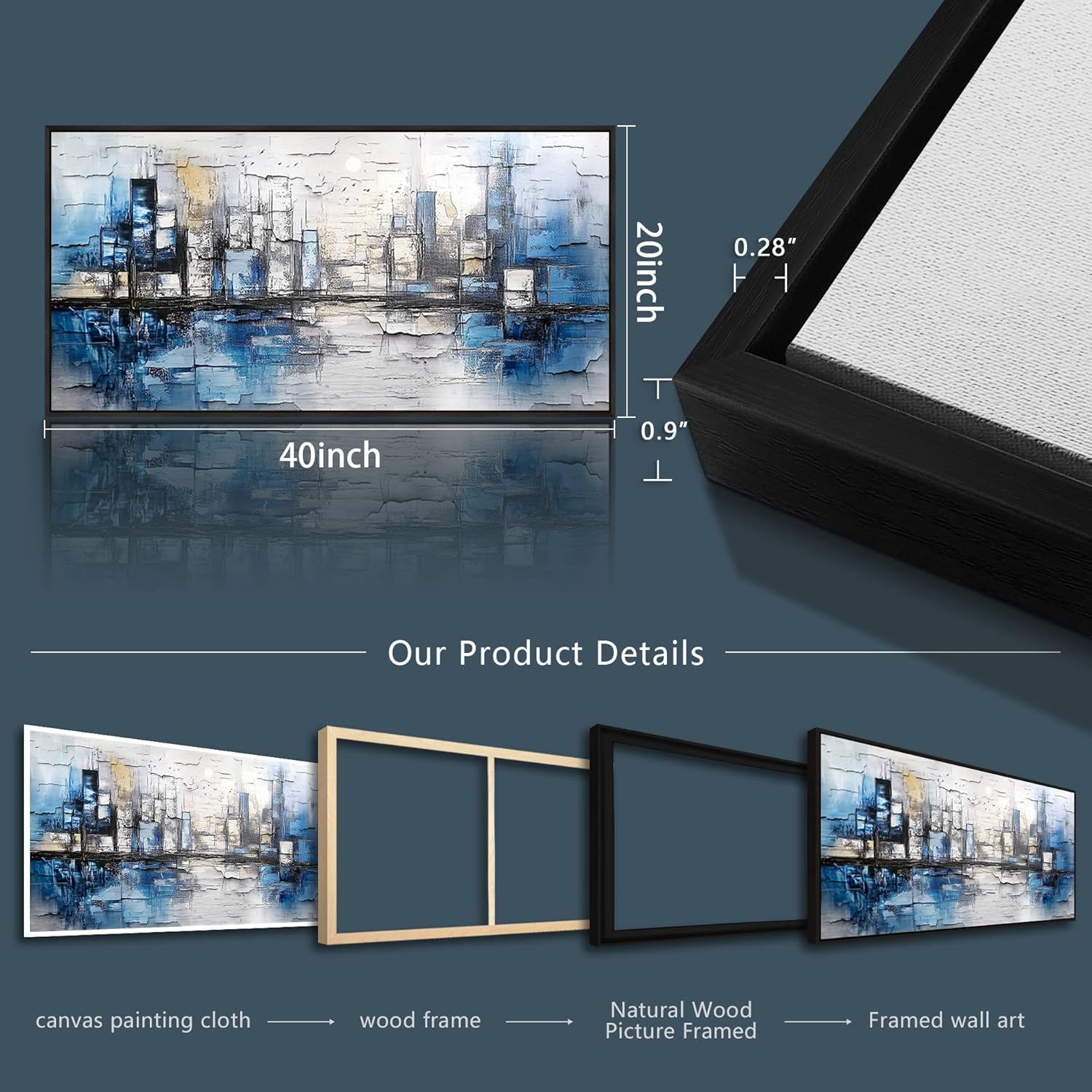 - Framed Wall Art Size: 20x40 inches (50x100 cm) Blue Abstract,Makes a great focal point for a living room, bedroom, office, or any space that needs natural beauty