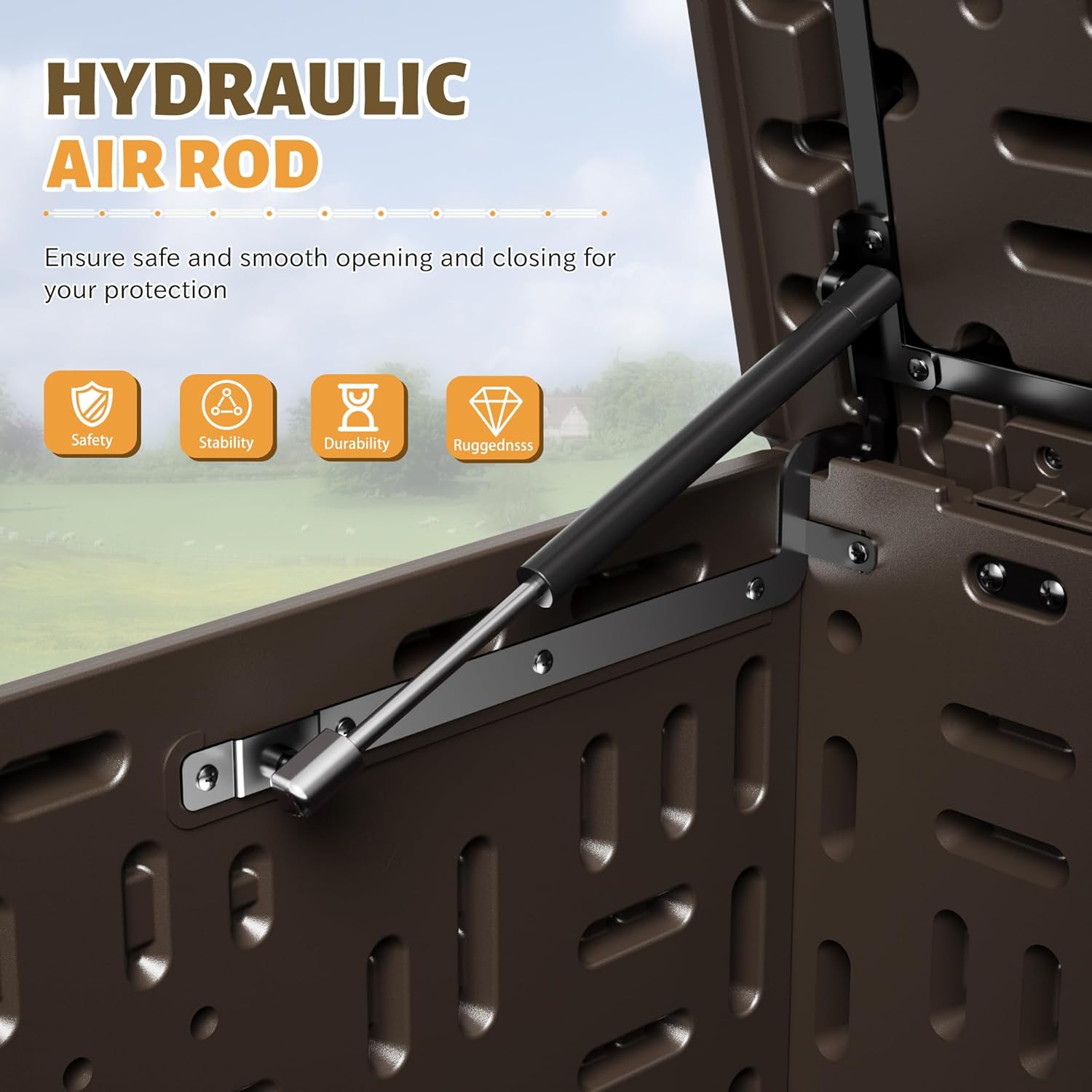 - [Safety Design]We choose hydraulic rods to connect the cover and the box, which buffers at the time of opening and closing, greatly ensuring the safety. In addition, the design of locker is a good helper for your safety of property