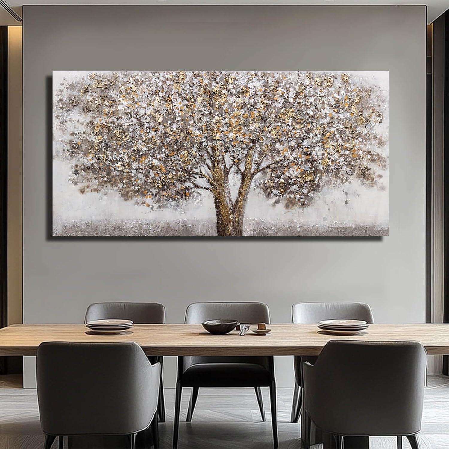 CHUDANHAO Large Canvas Wall Art Decorative Paintings Grey Room Decor Gold Tree Picture Scenery Artwork for Living Room Bedroom Hotel 29"x58"