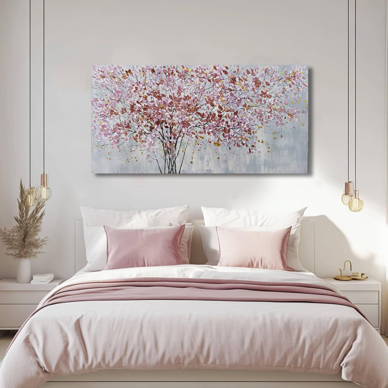 Colorful Flowers Canvas Art Prints Pink and Red Tree Wall Decor 24"x48" Bedroom Plant Wall Art Office Artwork Living Room Posters