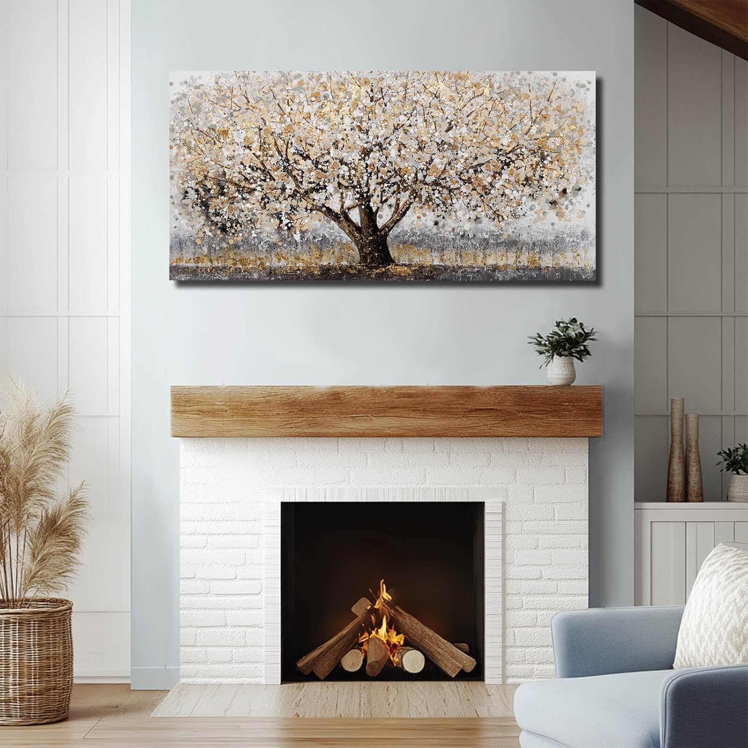CHUDANHAO Abstract Grey Graffiti Wall Decor Big Tree Painting Gold Photo Prints Modern Canvas Art for Dining Room Bedroom 24"x48" Gallery Wall Art
