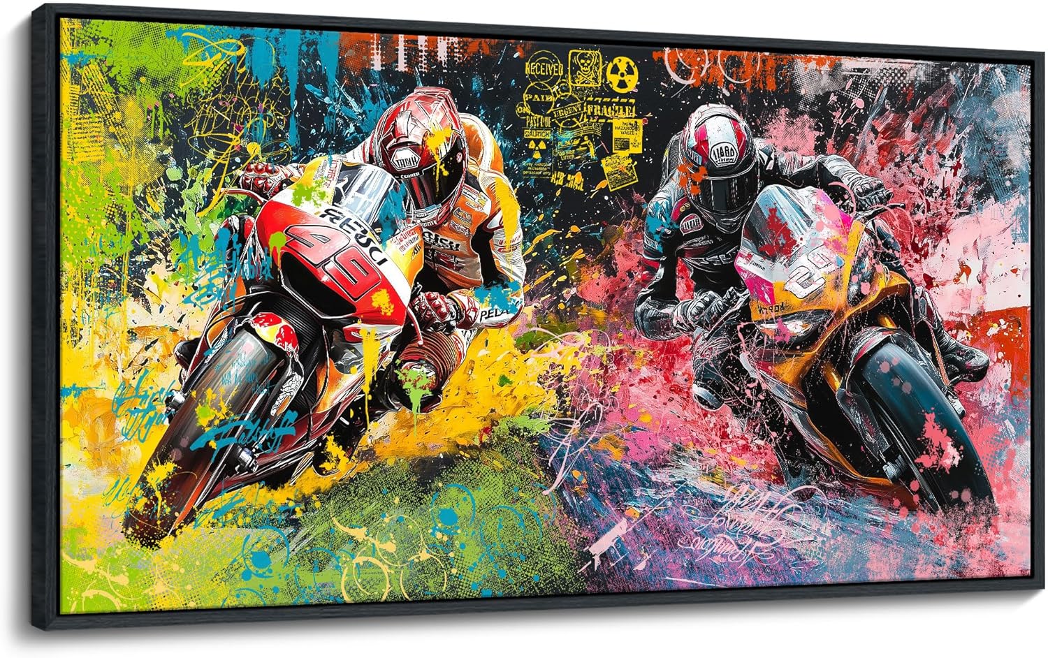 JEAWA Framed Canvas Wall Art - 24x48 In Large Abstract Painting Decor, Motorcycle Racing Color Graffiti Pictures, Modern Art Prints for Bedroom Living Room Bathroom Home Decoration