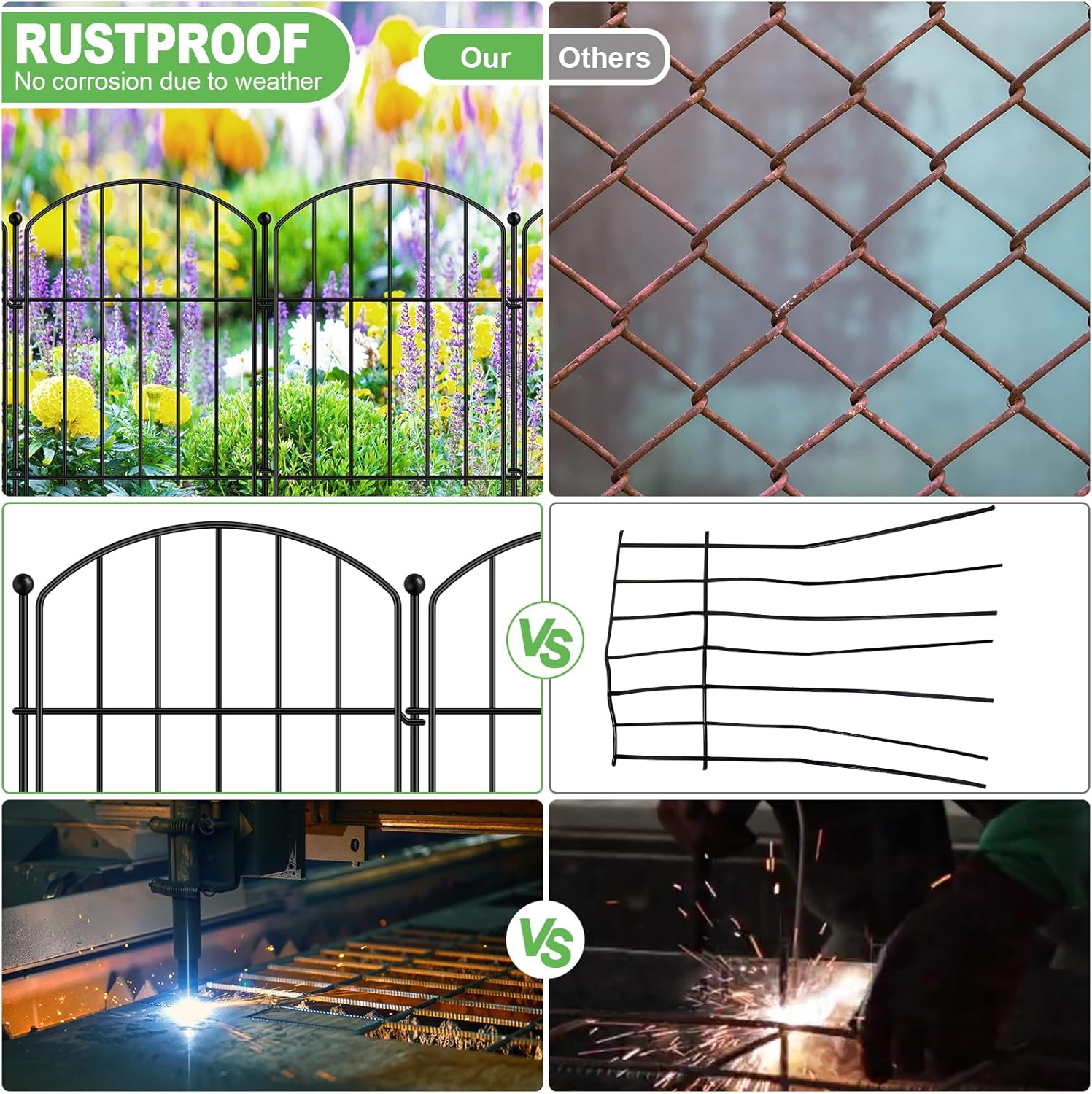 - 【Upgraded Garden Fence】Make your outdoor space a charming oasis with our garden fence animal barrier. The outdoor garden boundary fencing is of an arched design, welded by thick metal wire, enhanced welding strength, not easy to crack more solid, the surface after baking paint process, rust-resistant and durable. Even in the outdoor wind and solarization, it can work for you for a long time.