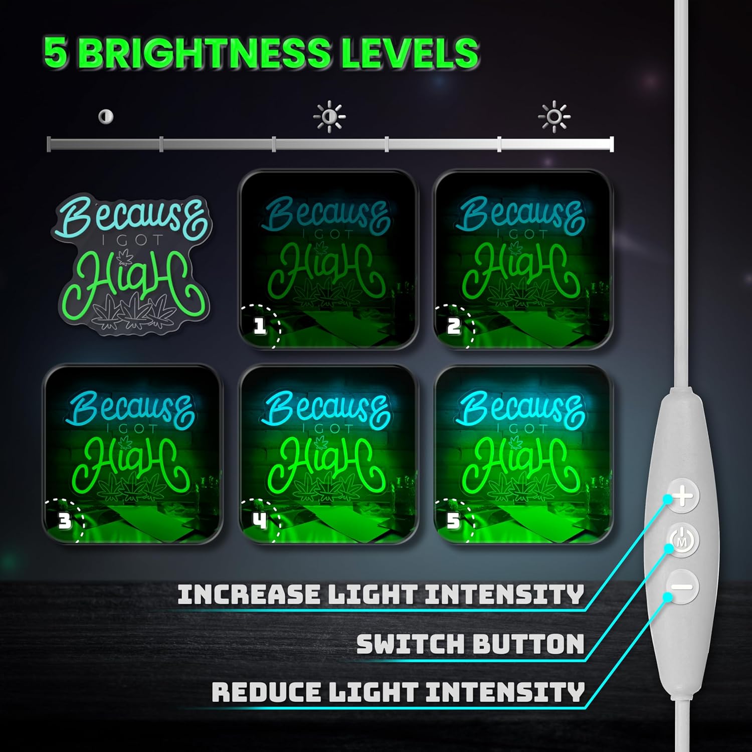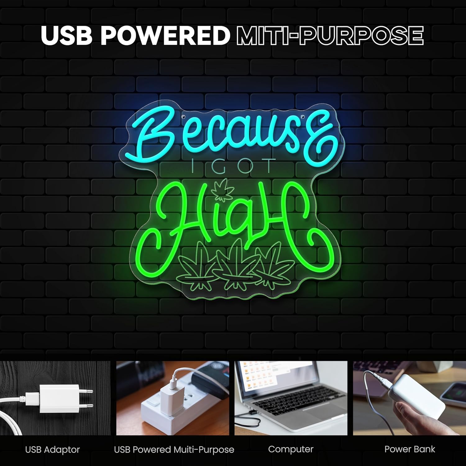 Leaf Neon Sign, Because I Got High Neon Signs for Wall Decor, Dimmable Acrylic Neon Lights for Living Room Bedroom Bar Pub Club Man Cave Game Room Hotel Party Decorations