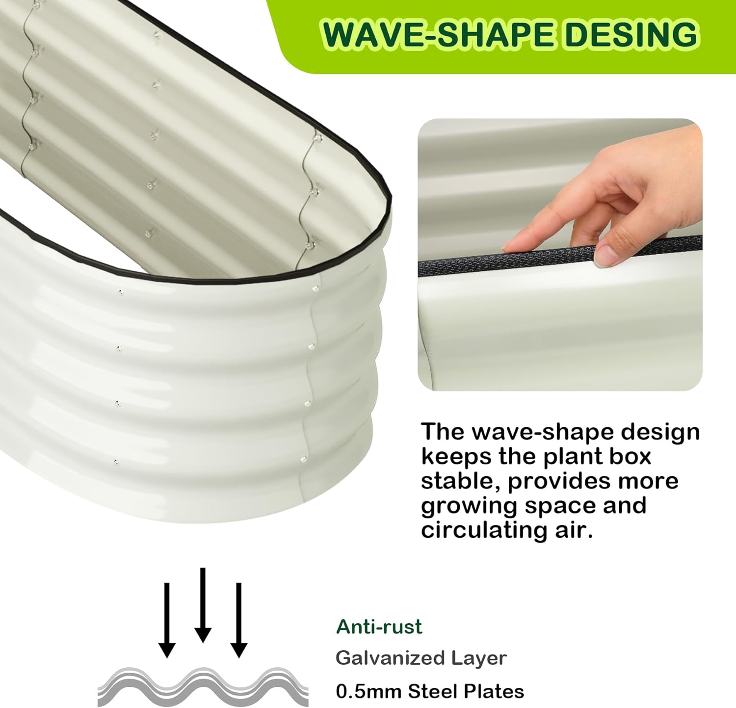 - 🌳 Unmatched Stability: Crafted with 0.5mm thick overlapping galvanized panels, reaching up to 1.8mm at the seams, our raised garden bed provides excellent strength and stability. The integrated screw fastening edge and unique oval form ensure it remains solid and secure, even when fully planted.