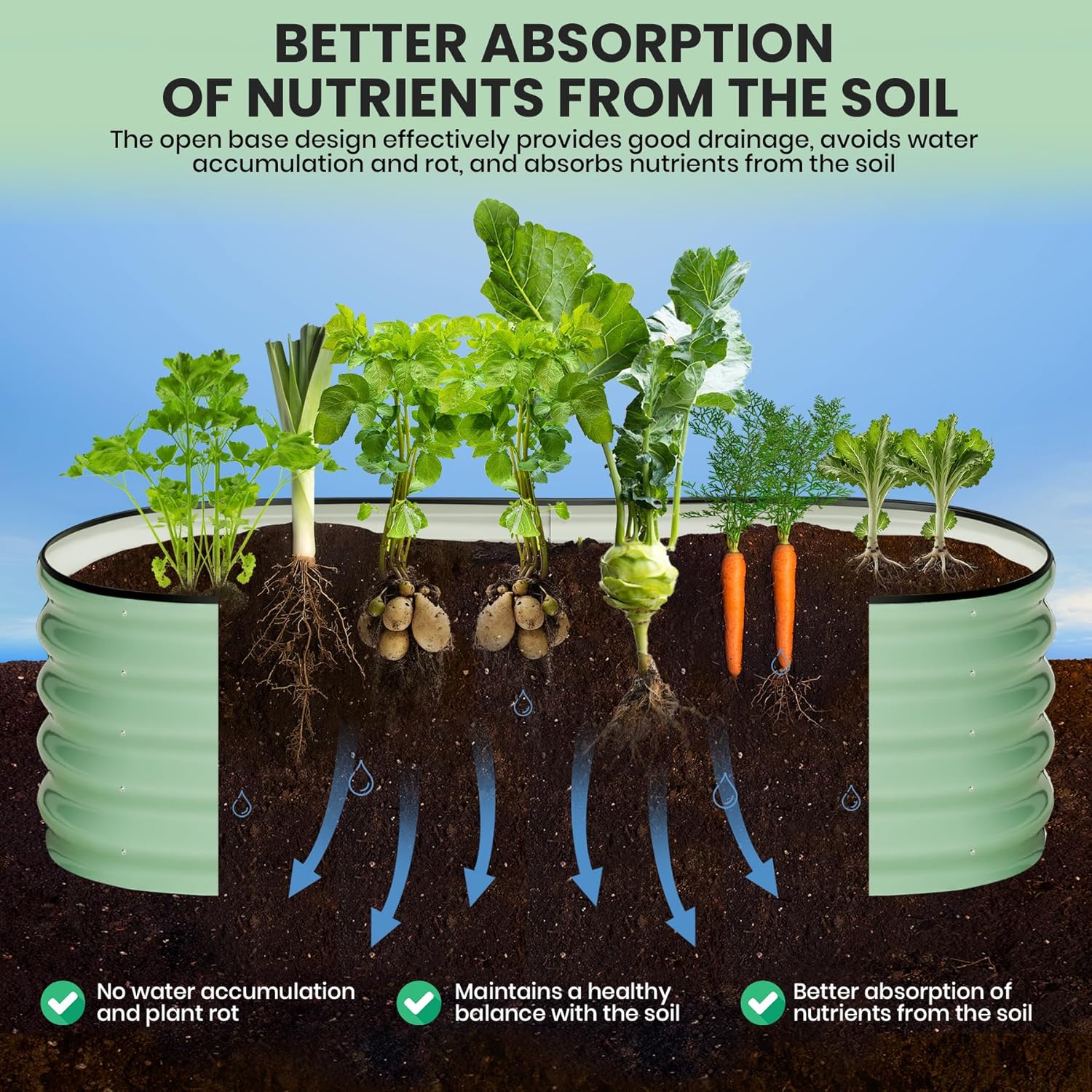 - 🌳 Unmatched Stability: Crafted with 0.5mm thick overlapping galvanized panels, reaching up to 1.8mm at the seams, our raised garden bed provides excellent strength and stability. The integrated screw fastening edge and unique oval form ensure it remains solid and secure, even when fully planted.
