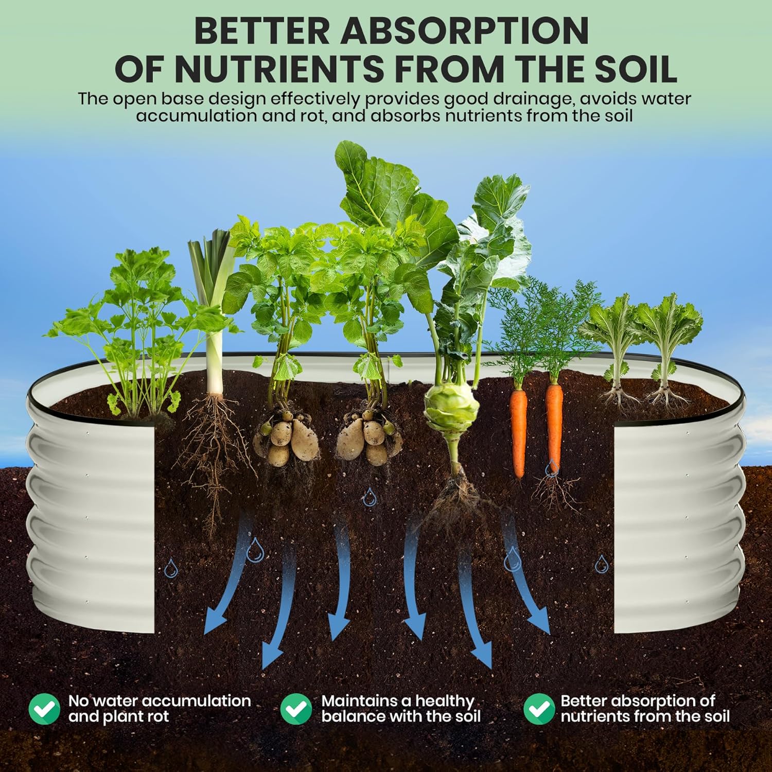 - 🌳 Unmatched Stability: Crafted with 0.5mm thick overlapping galvanized panels, reaching up to 1.8mm at the seams, our raised garden bed provides excellent strength and stability. The integrated screw fastening edge and unique oval form ensure it remains solid and secure, even when fully planted.