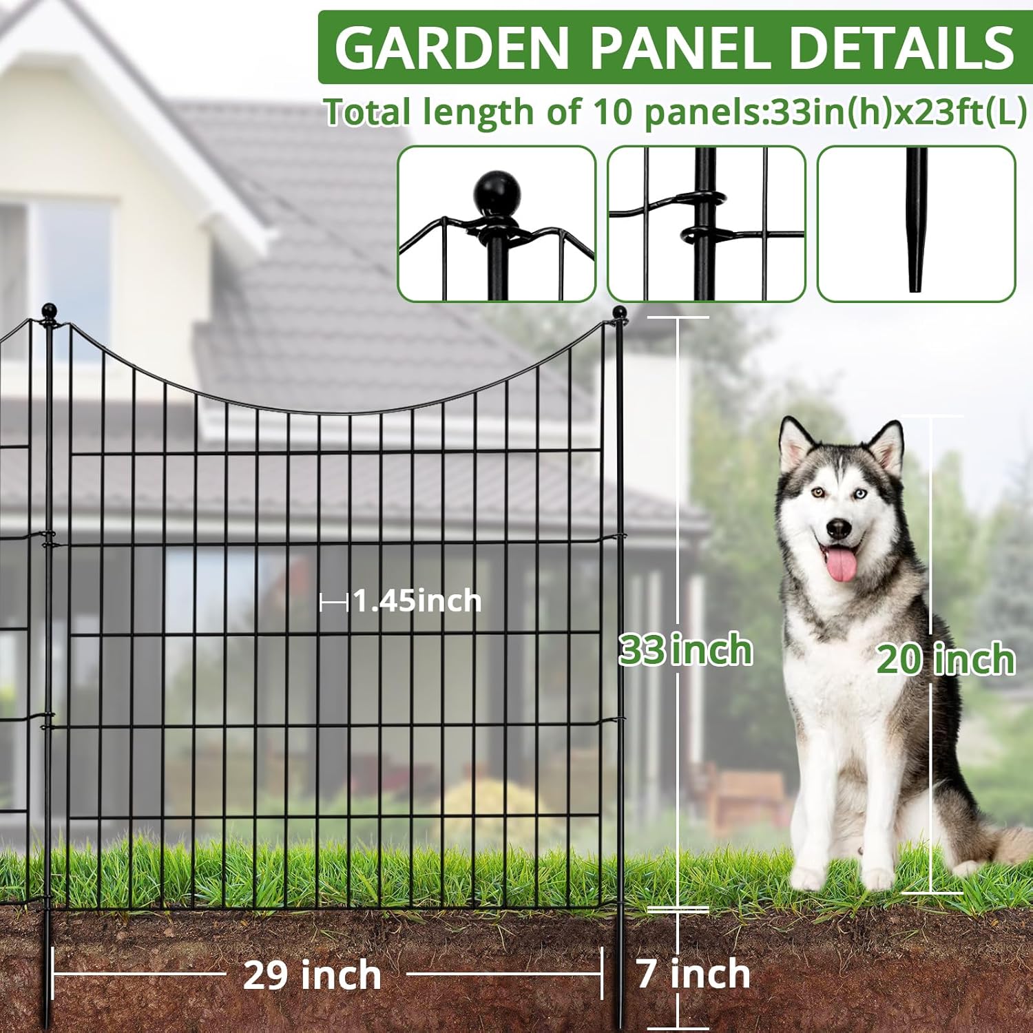 10 Panels No Dig Decorative Garden Fence for Yard, 32 in(H) X 24 ft(L) Rustproof Metal Wire Animal Barrier Fence for Dogs, Rabbits, Landscape Edging, and Patio with 11 Temporary Fencing Stakes