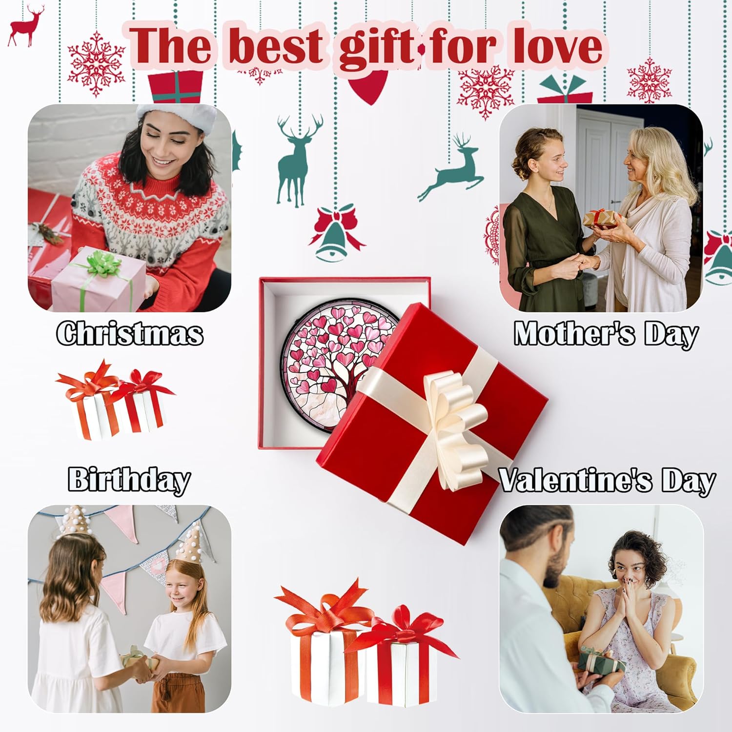 Stained Glass Window Hanging, Valentine's Day Gifts Pink Love Heart Tree Suncatcher Hangings Beige Sun Catchers Decor for Birthday for Women, Men, Wife, Aunt, Mom 6.3 in