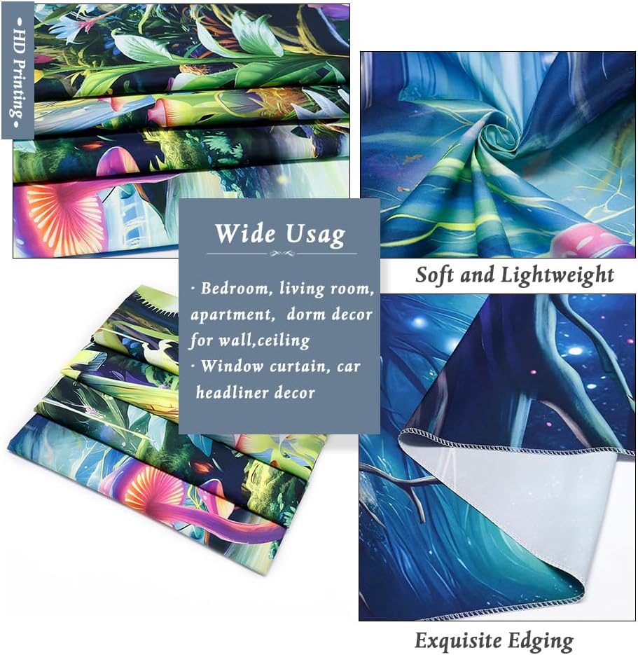 - UV/ Blacklight Reactive: The fantasy landscape tapestry adopts advanced HD printing technology, with clear patterns and vivid colors. It can glow gorgeously under black light or UV light in the dark. Under normal light, the color is also full and vivid.
