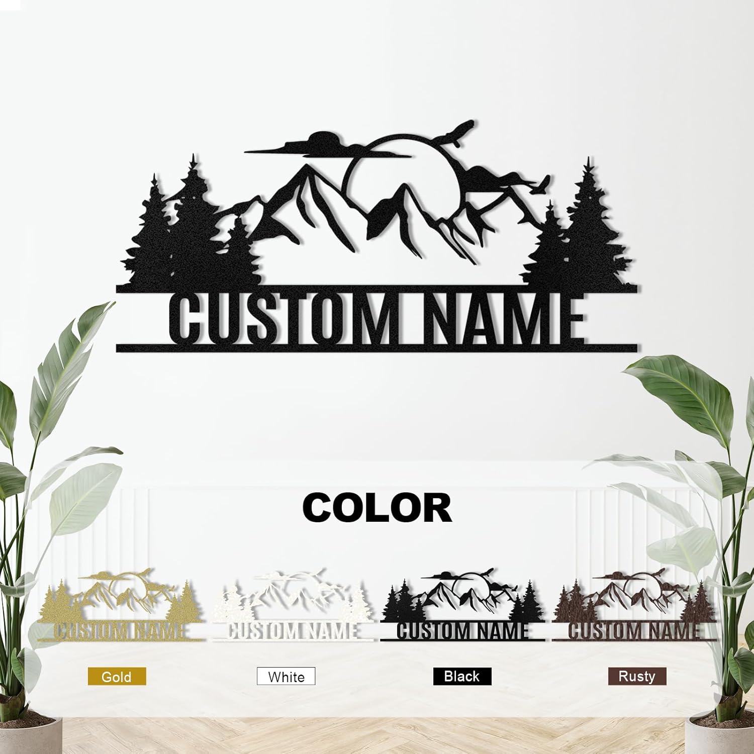 Personalized Mountain Metal Sign, Metal Mountain Wall Art Decor, Custom Family Name Sign, Custom Sign Outdoor Metal, Forest Home Decor Sign, Nature Wall Art, Cabin Decor, Housewarming Gifts