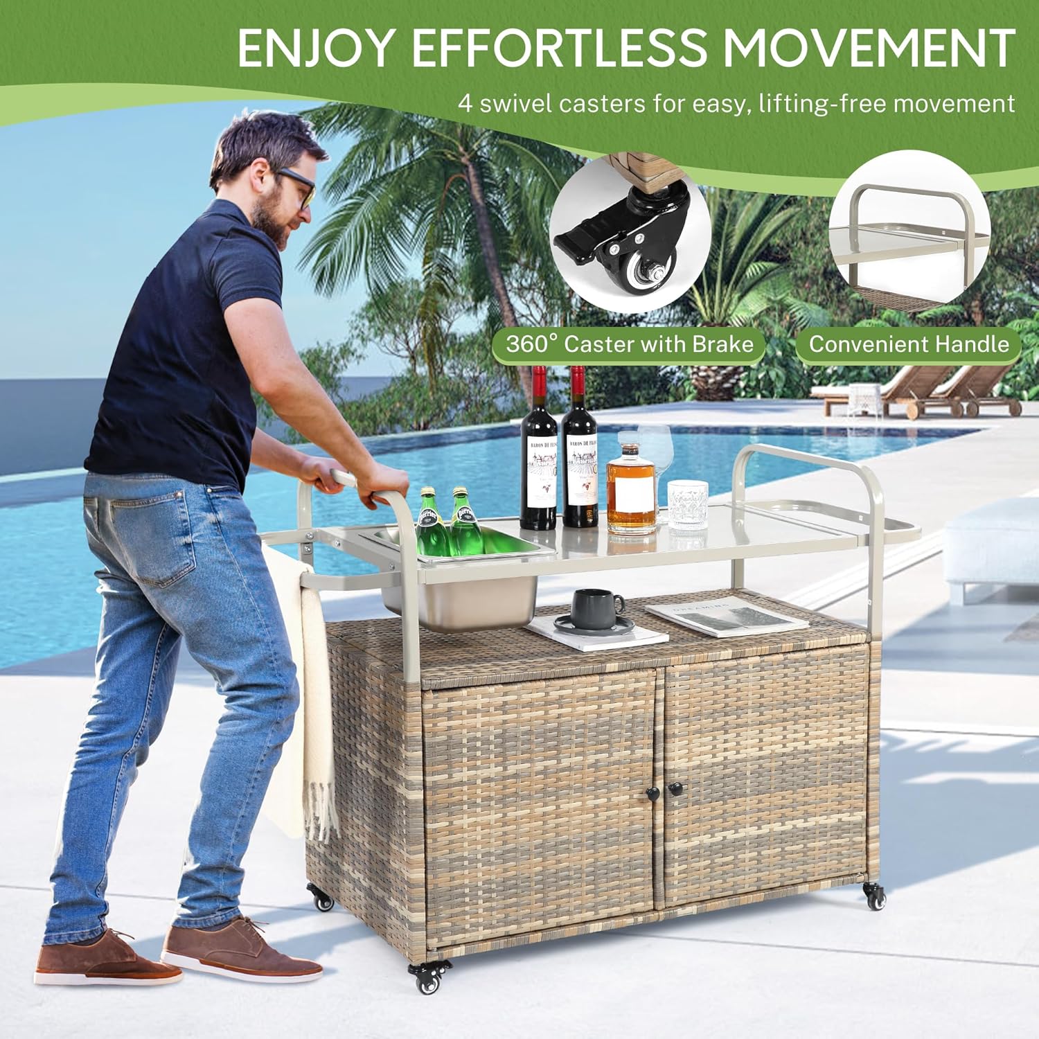 - LOW MAINTENANCE: Assembling this outdoor storage cart is quick and straightforward with minimal tools required. Once assembled, maintaining the cart is easy—simply wipe down the wicker surface and remove the ice bucket for cleaning