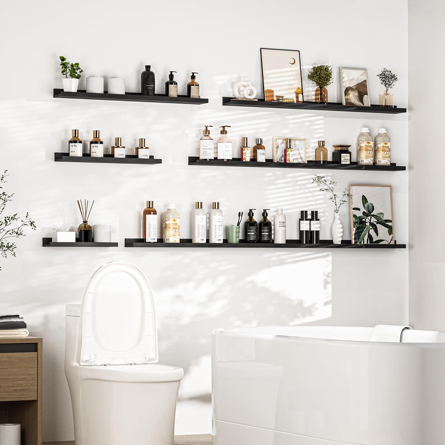 - Picture ledge Shelf for Walls: If you have dozens of pictures but don't know how to display them, Heimlove picture ledge shelves(especially large size) for walls are perfect! With our hanging shelves, store and display different types and sizes of photo frames in one place with no worries of falling off.