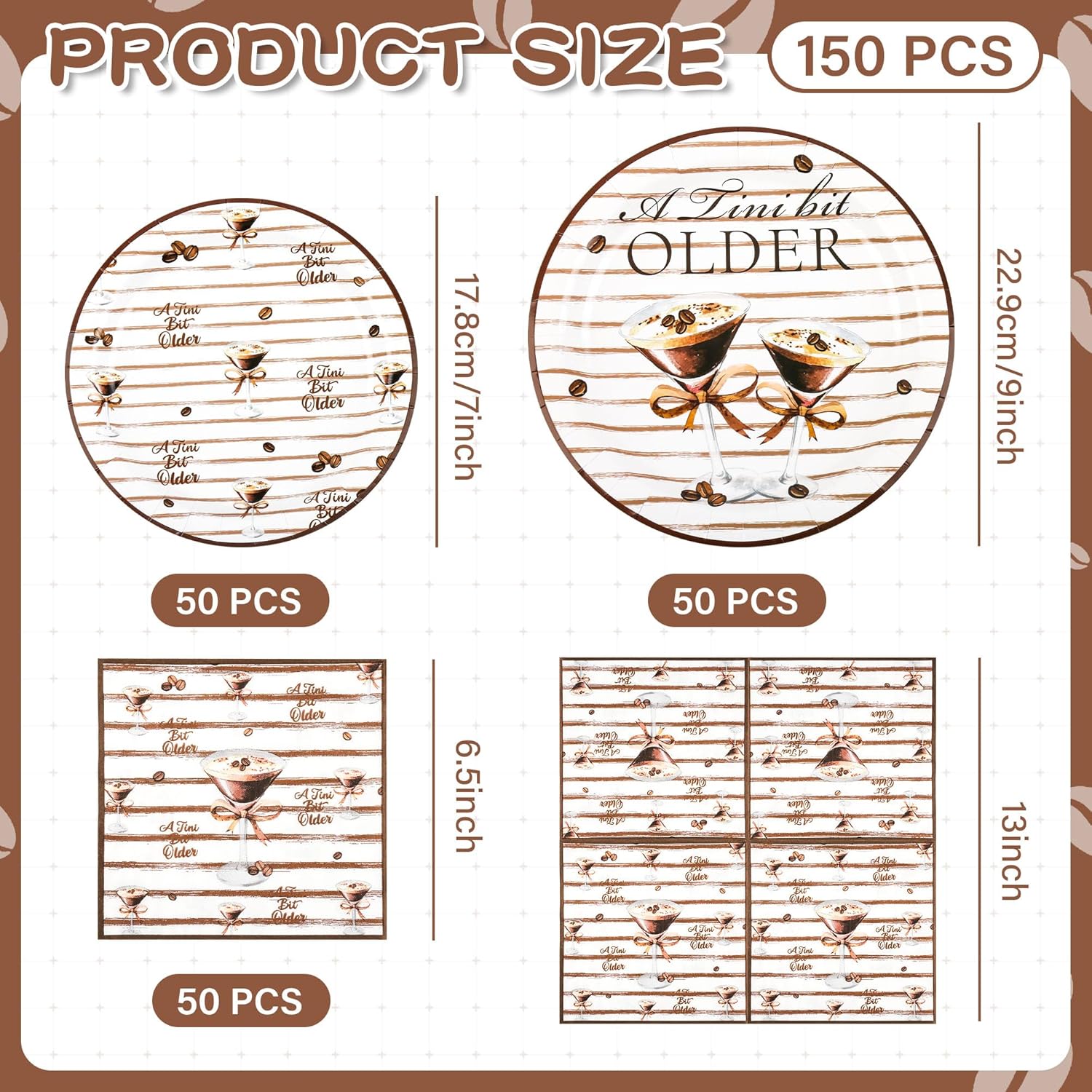 150Pcs Tini Bit Older Martini Decor Martini Plates Napkins A Tini Bit Older Plates Disposable Martini Party Dinner Dessert Plates for Espresso Birthday Bar Bachelorette Party,Serves 50