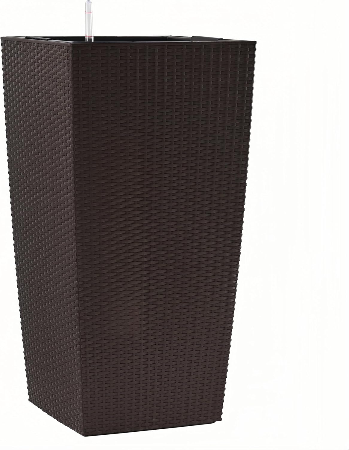 30in Tall Large Plant Pots Planter-Self-Watering Indoor/Outdoor Planting with Drain Holes, Water Level Monitor, Inner Bucket for Front Porch Patio, Brown Large