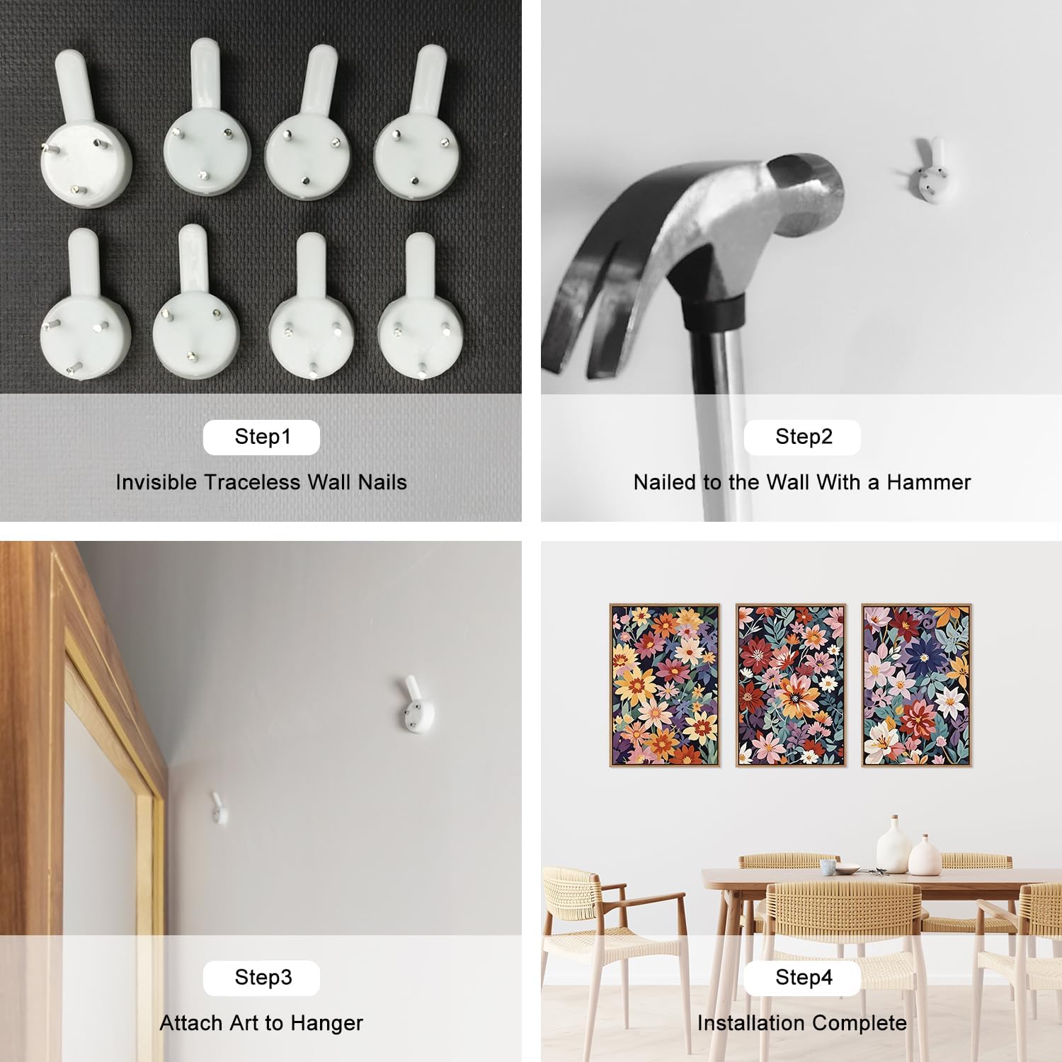 - Simple To Install:Each of these three colorful floral art prints pieces measures 16x24inches. It comes with all the necessary accessories so it's simple and easy to install. Simply choose where you want to decorate, make sure it's level and aligned the way you want it, and then nail it down with non-marking nails.
