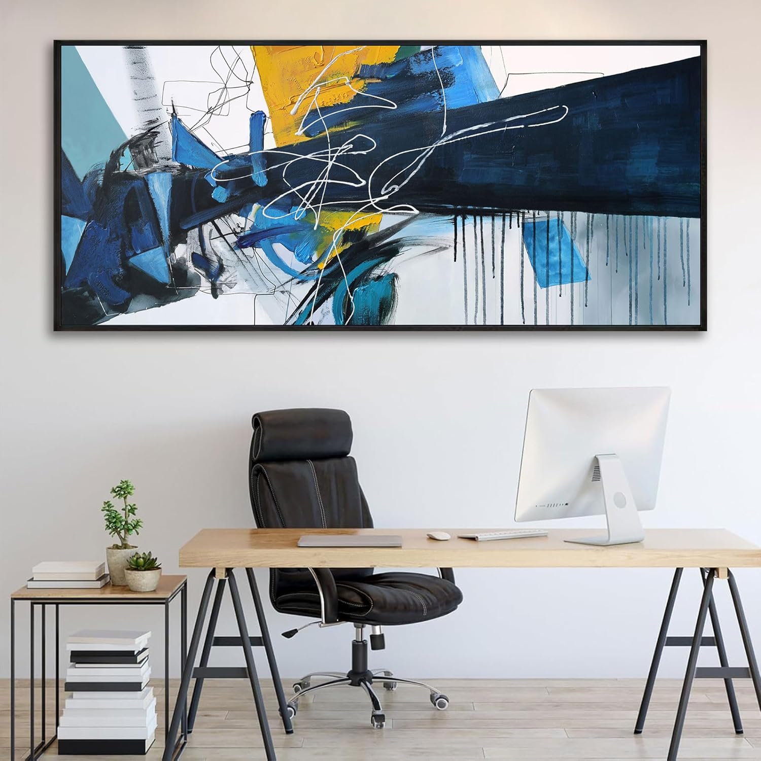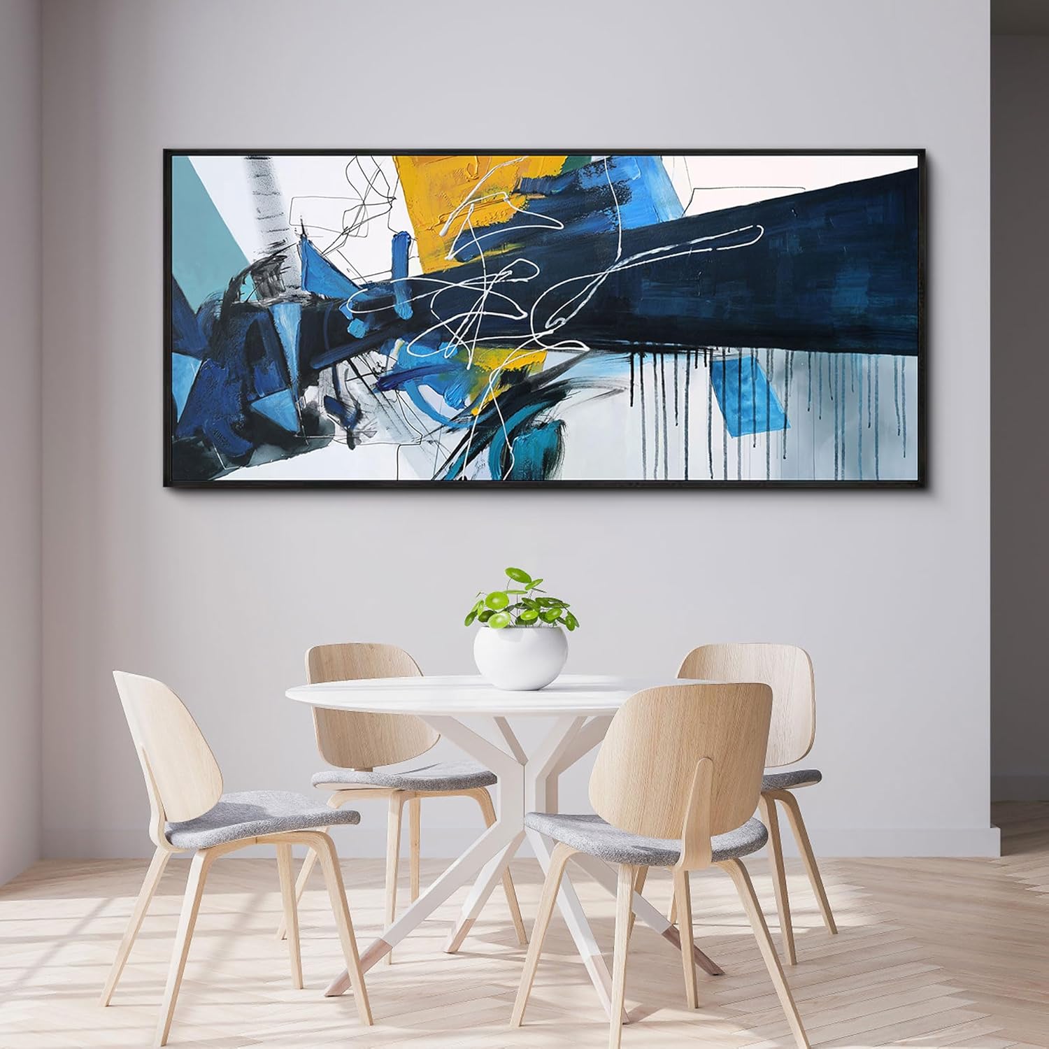 KLAKLA Extra Large Wall Art for Living Room - Blue and white Canvas Framed Wall Decor Living Room Abstract Picture Artwork for Office Bedroom Decorative Paintings
