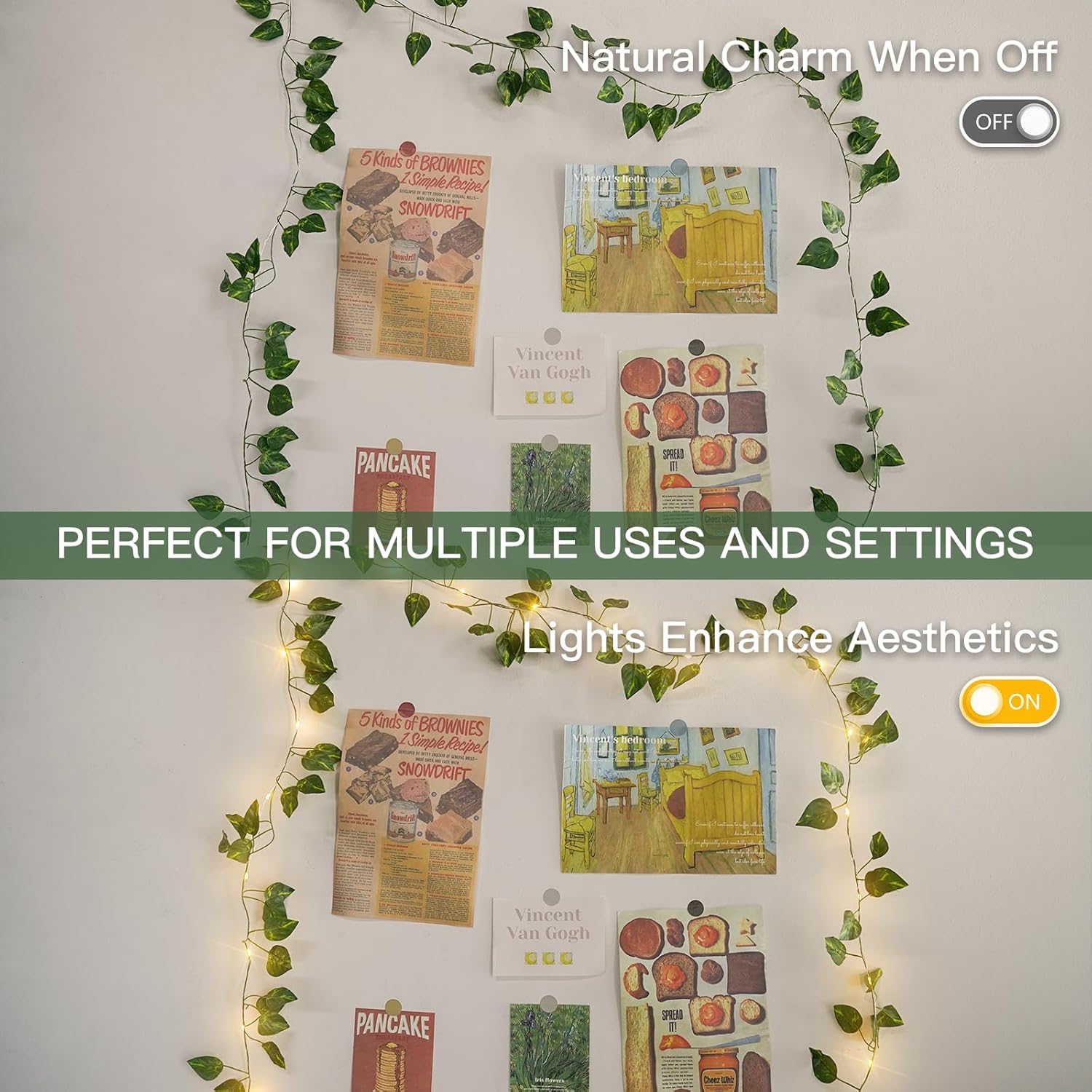 - 40 LED Warm Lights: Every vine string light is interwoven with 40 LED lights, akin to sparkling stars, infusing your surroundings with warm radiance. Much like planets adorning the night sky, these vine lights shine brilliantly in the dark, infusing the decoration with boundless hues of fantasy, as though you were right there. For instance, during the evening hours, the fairy lights with vines can create an atmosphere of tranquility and romance, providing the perfect setting for relaxation.