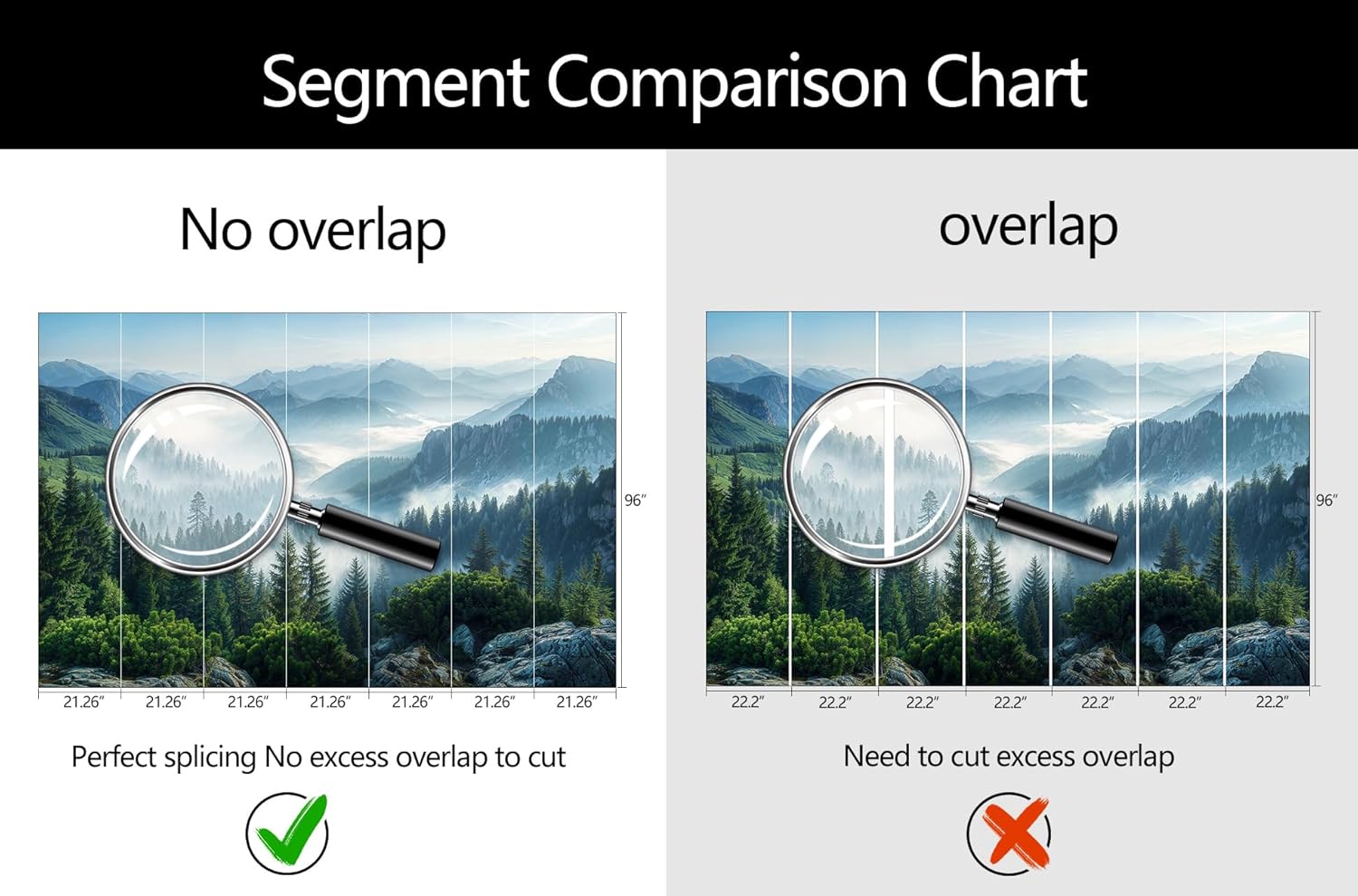 - Mural Size: The total size of this mural wallpaper is 149" x 96" / 378CM x 244CM (W x H), cut into 7 pieces, each measuring 21.26" x 96", for easy installation.