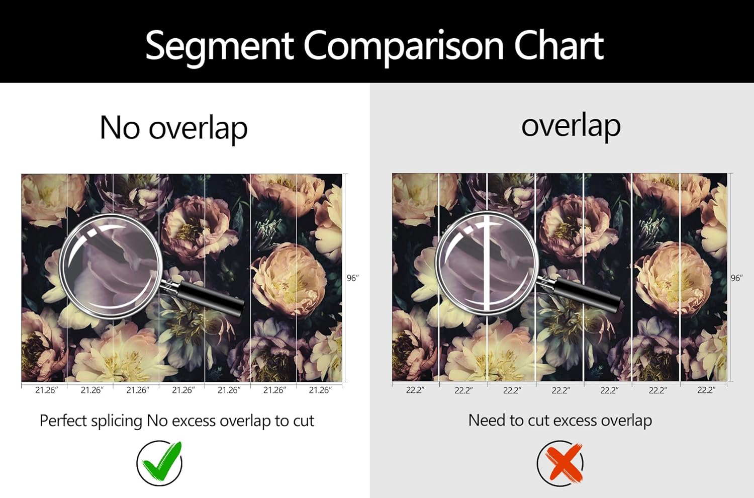 - Mural Size: The total size of this mural wallpaper is 149" x 96" / 378CM x 244CM (W x H), cut into 7 pieces, each measuring 21.26" x 96", for easy installation.