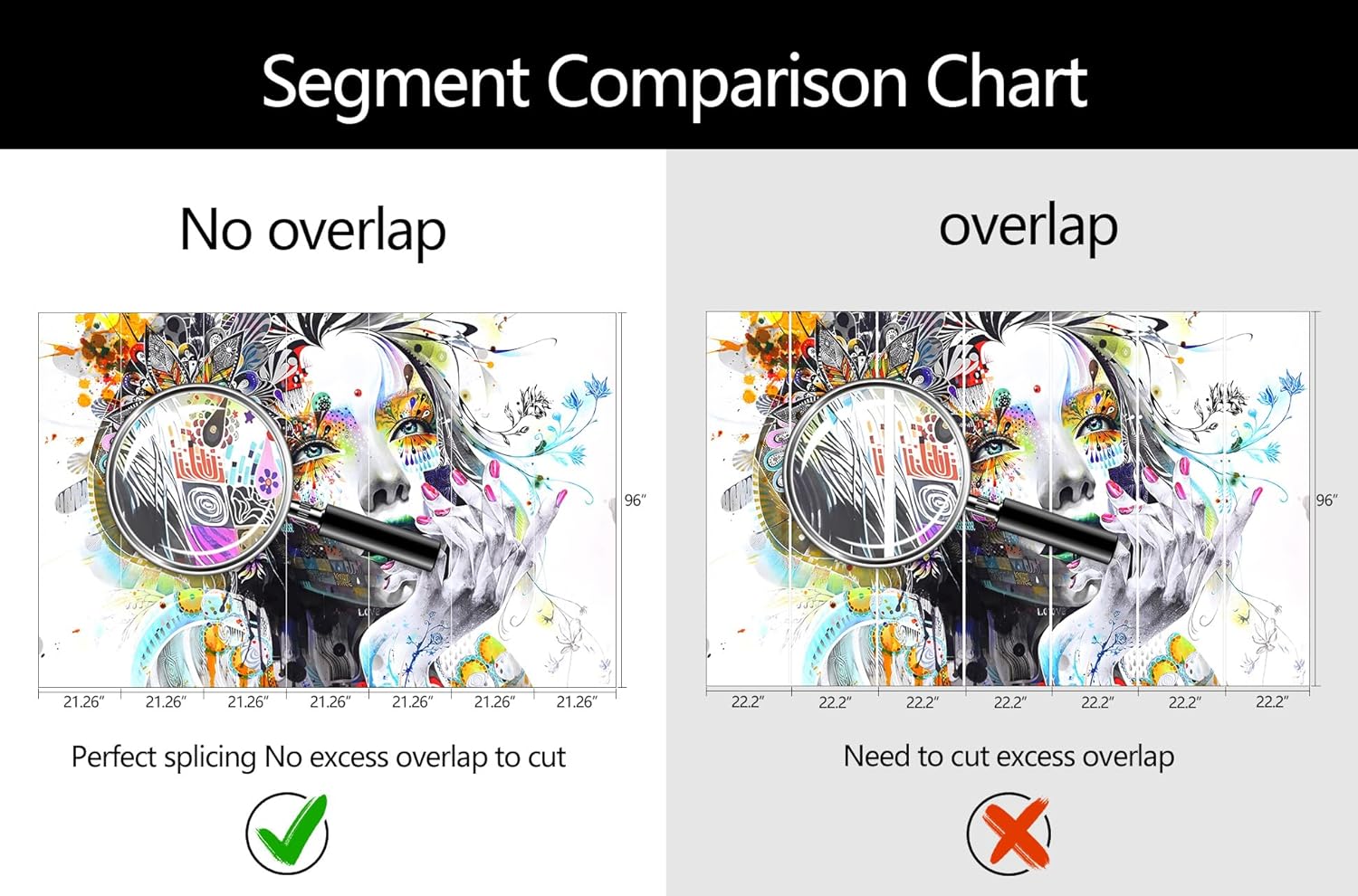 - Mural Size: The total size of this mural wallpaper is 149" x 96" / 378CM x 244CM (W x H), cut into 7 pieces, each measuring 21.26" x 96", for easy installation.