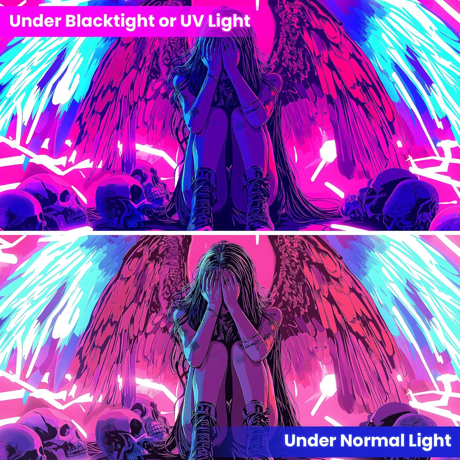 - 【Blacklight/UV Reactive】 Due to the special ink and advanced technology, the blacklight wing tapestry's colors can be changed under Black Light or UV Reactive Light. You can enjoy different effects by kinds of light, the tapestry will be amazing. Under normal light, the colors are also beautiful.